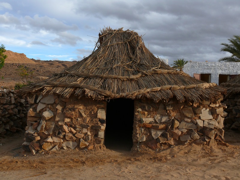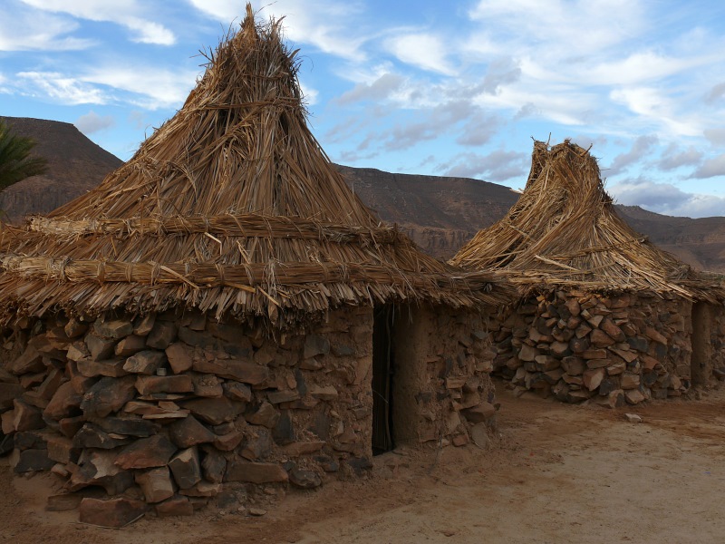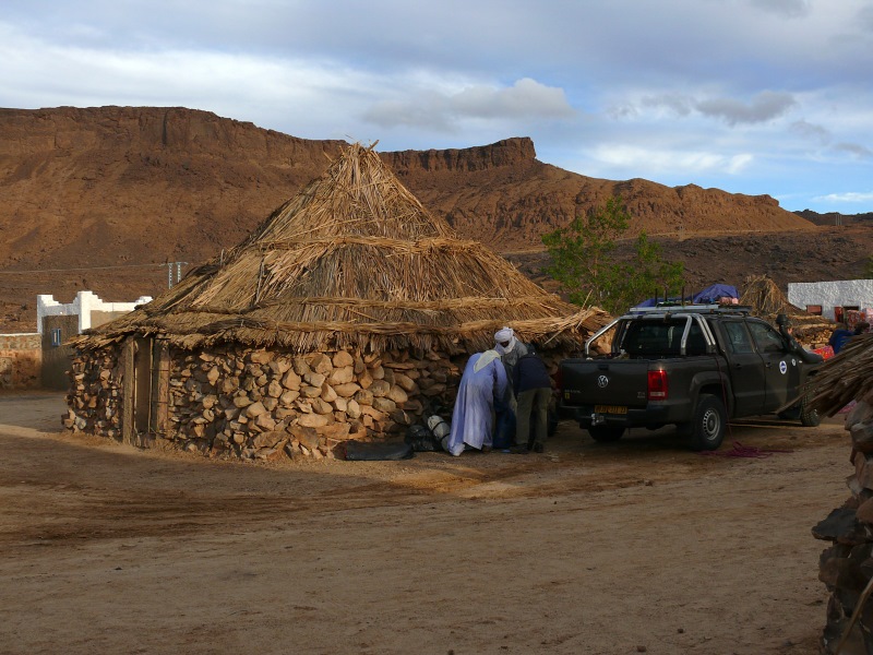 Zeriba-Hütten, unsere komfortable Unterkunft in Iherir. Einen Schlüssel brauchen wir nicht.