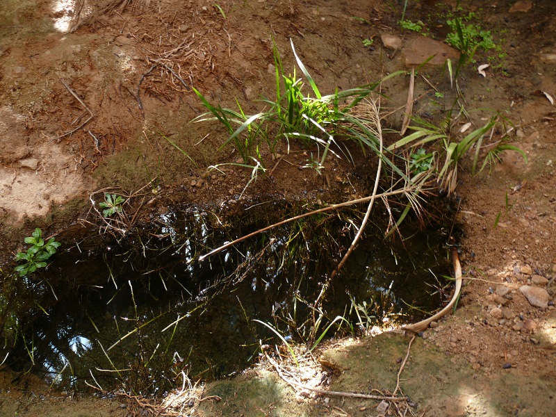 Unvermittelt sprudelt hier Wasser, das sich über viele Jahre durch die Kapillaren der Sandseinfelsen hindurchgezwängt hat und hier auf eine Sperrschicht gestoßen ist, aus dem schenbaren Nichts hervor.