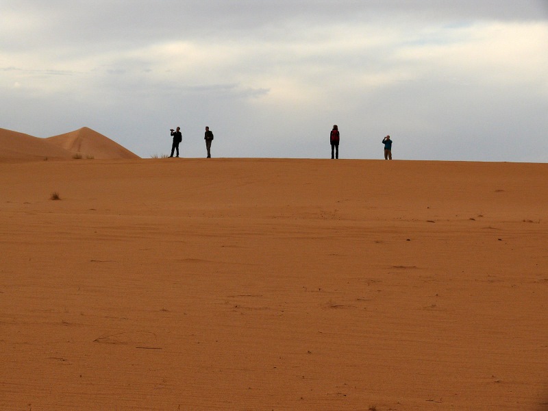Das sanfter werdende Licht eine Stunde vor Sonnenuntergang lockt auch einige Mitwanderer auf die Dünenkämme