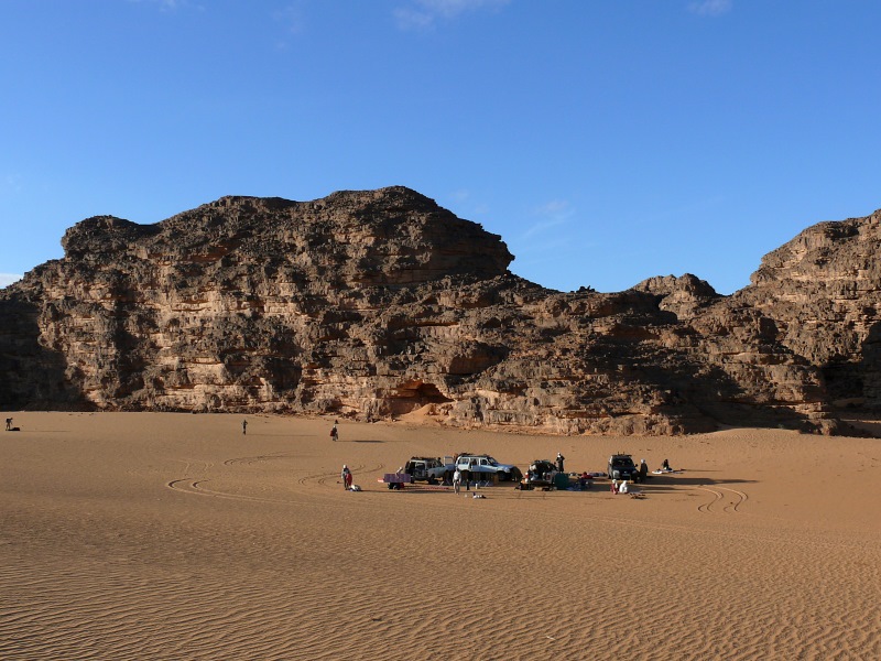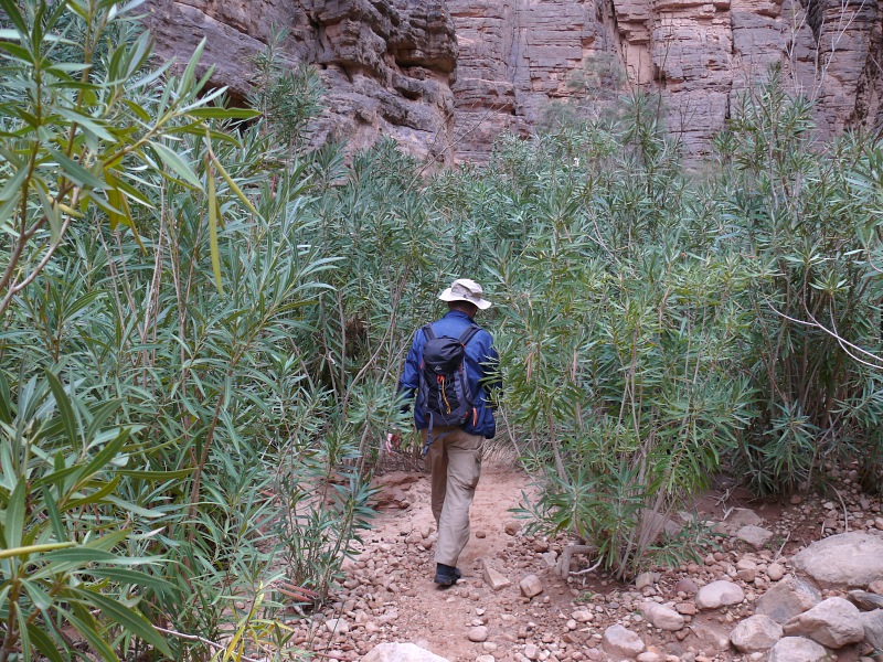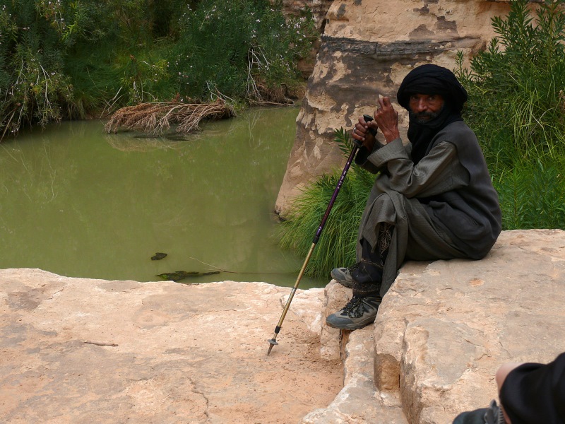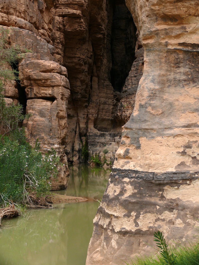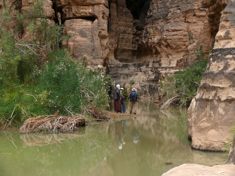 Mit der Guelta von Essendilene schließt die Schlucht ab. Es herrscht ein mittlerer Wasserstand. Bei niedrigem Wasserstand lässt sich noch ein paar Meter weiter in die Schlucht eindringen, bei hohem Wasserstand ist der Rastpaltz bereits überschwemmt.