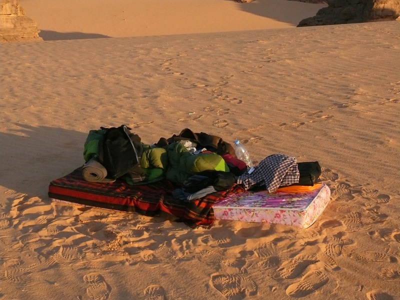 Nachtlager: eine Matratze und ein leichter Schlafsack ist ausreichend, sofern nicht ein allzu scharfer Wind weht.