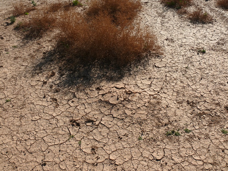 ausgetrocknete, rissig gewordene Tonerde, die sich in Senken gesammelt hat.
