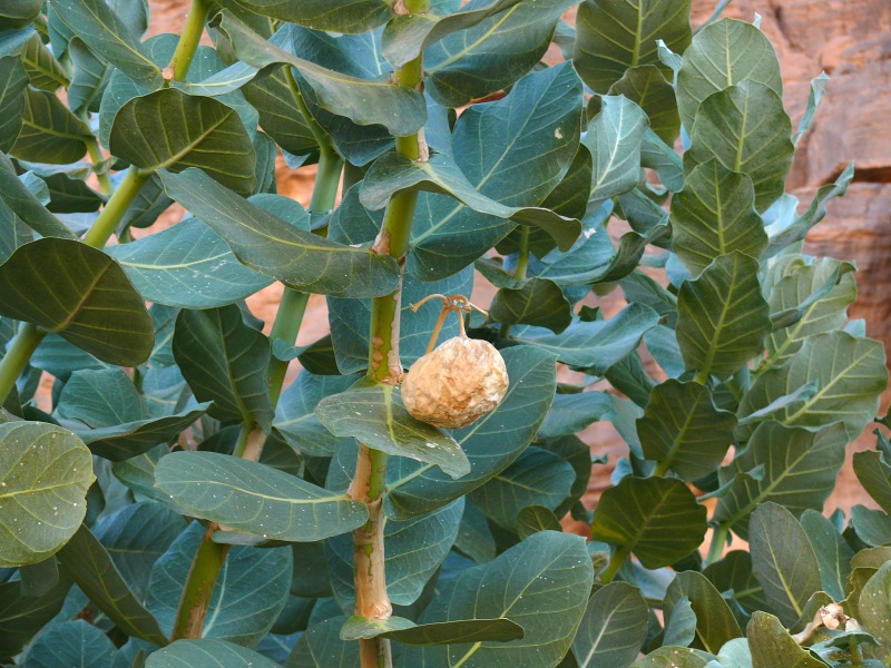 Eine vertrocknete Frucht ("Sodomsapfel") am Oscherstrauch