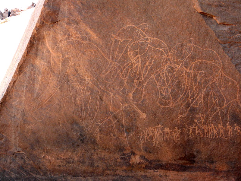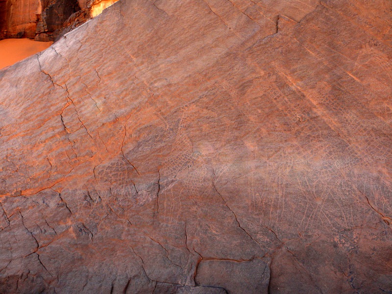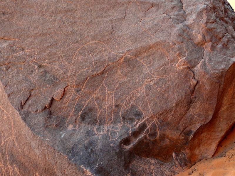 • Felsmalereien (Rundkopfzeit) • Felsgravuren (Nashorn, Elefanten, Giraffen etc.) • Kuh mit Halsband • Hinweise auf einen großen Binnensee • 220 m hohe Düne • topfebene graue Tonebene |