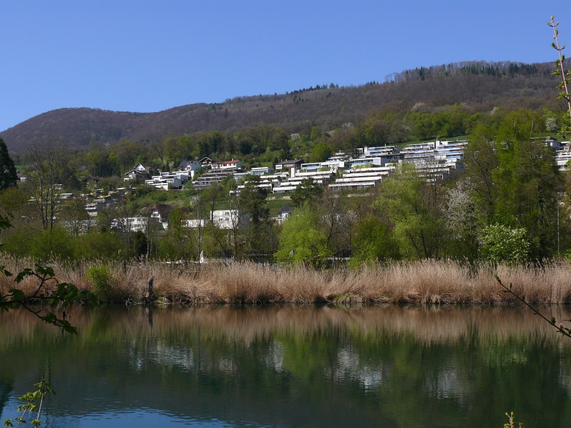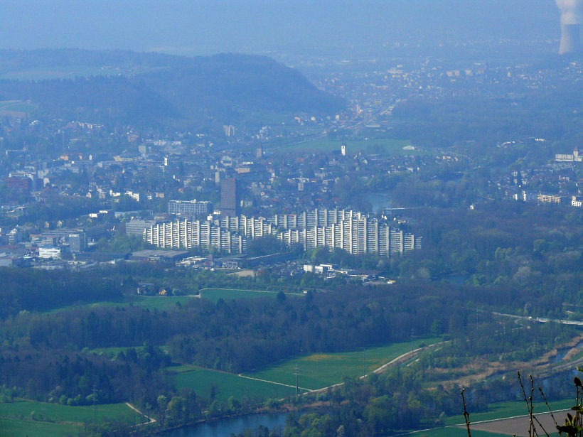 Die Sicht auf Aarau dominiert die inzwischen als progressiv angesehene Grosswohnsiedlung Telli, die zwischen 1971 und 1991 in drei Phasen erbaut wurde und heute Wohnraum für 2500 Einwohner zur Verfügung stellt. Das rötlichdunkle Telli-Hochhaus, mit 85 Metern das höchste Gebäude im Kanton Aargau, beherbergt ausschließlich die kantonale Verwaltung.