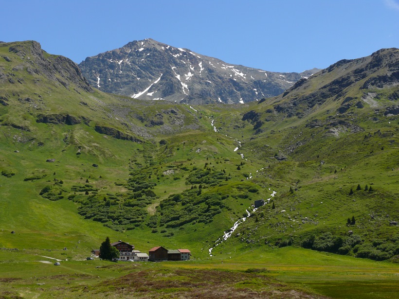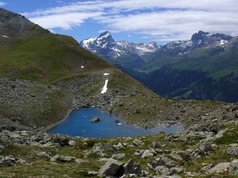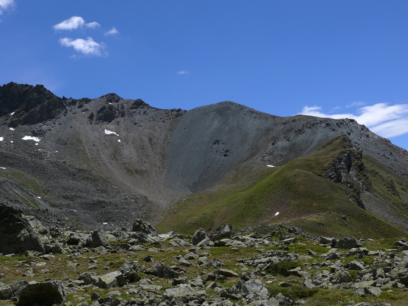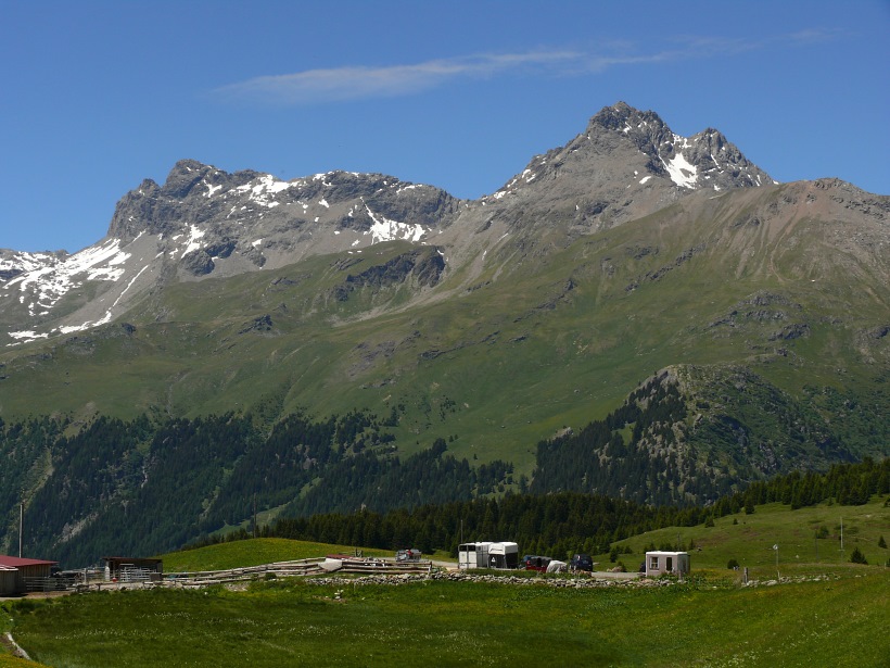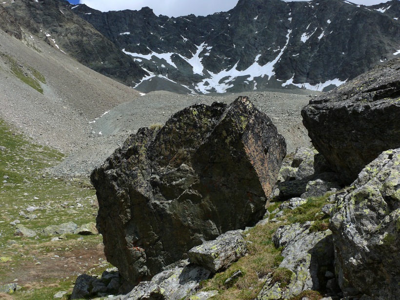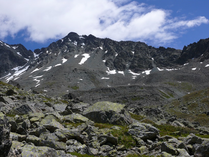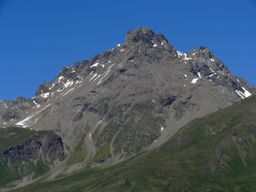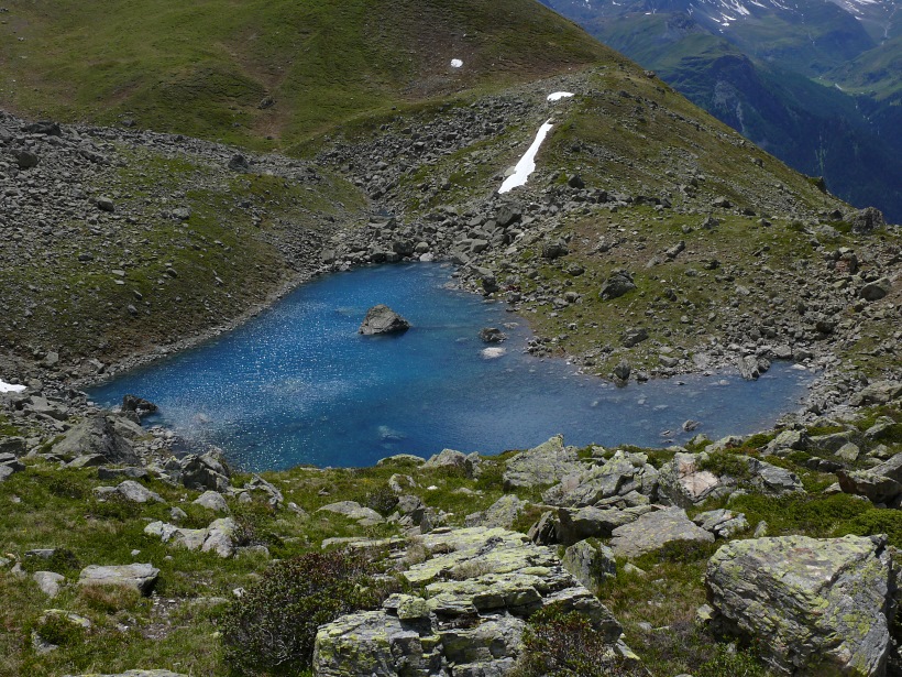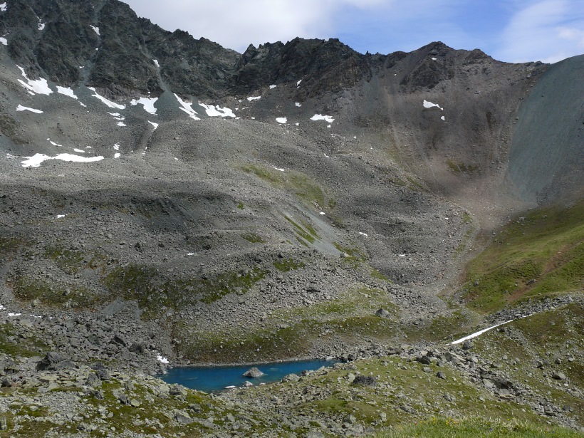 weitere Info | Von Tellers Davains - mit einem (leider unbenannten) schönen See zum Rasten - kann der Piz Calderas auf einer wenig begangenen T5-Route bestiegen werden |