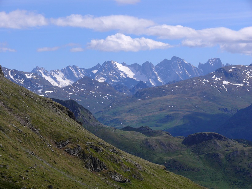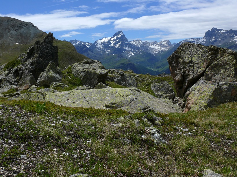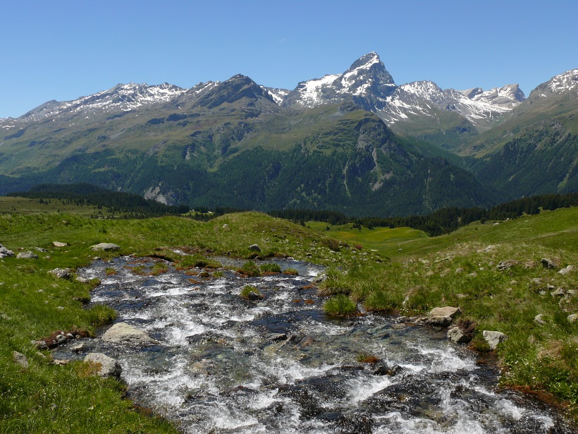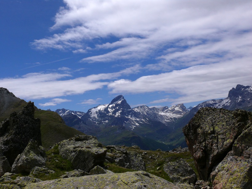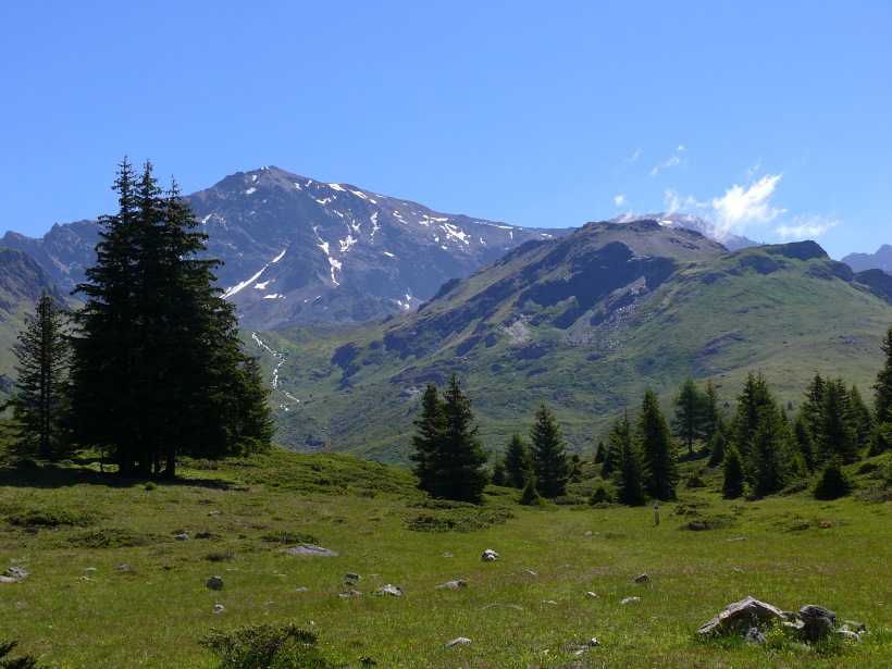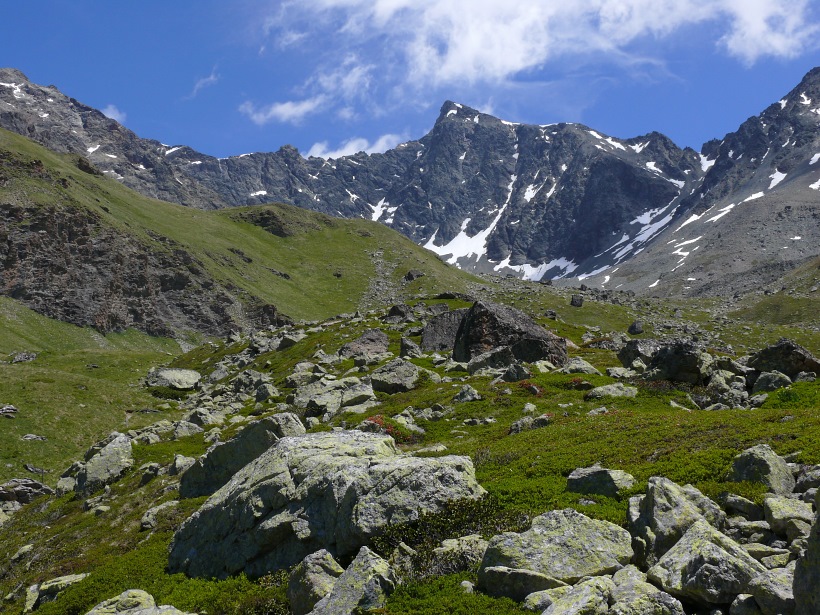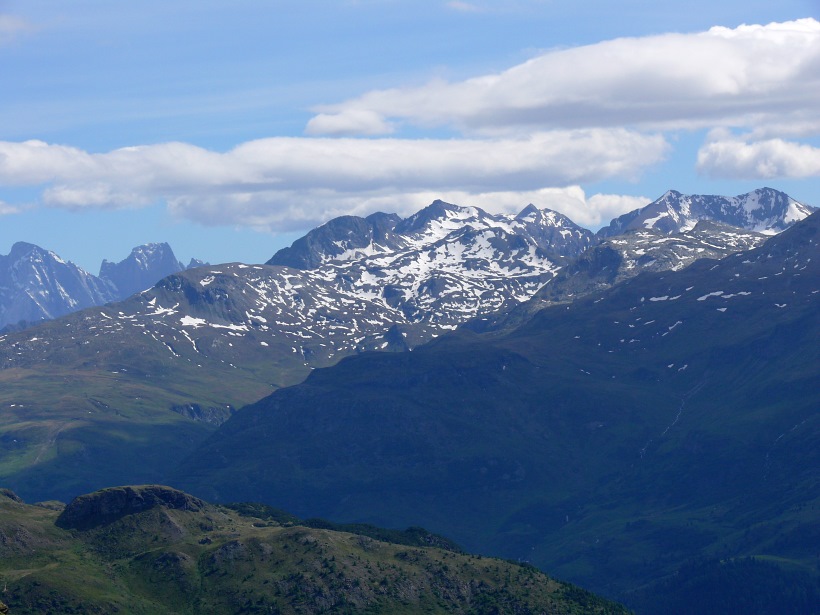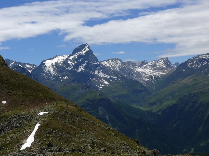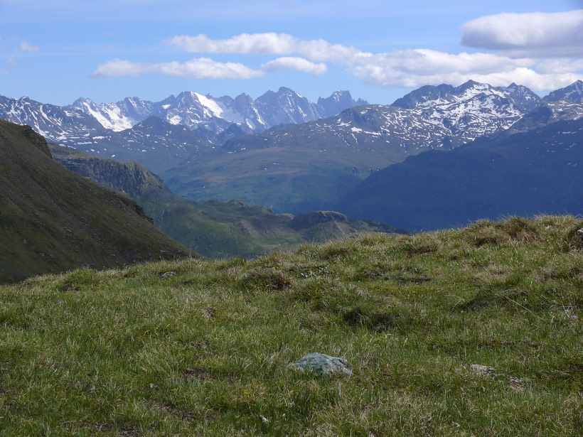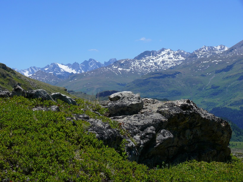 weitere Info | Von Tellers Davains - mit einem (leider unbenannten) schönen See zum Rasten - kann der Piz Calderas auf einer wenig begangenen T5-Route bestiegen werden |