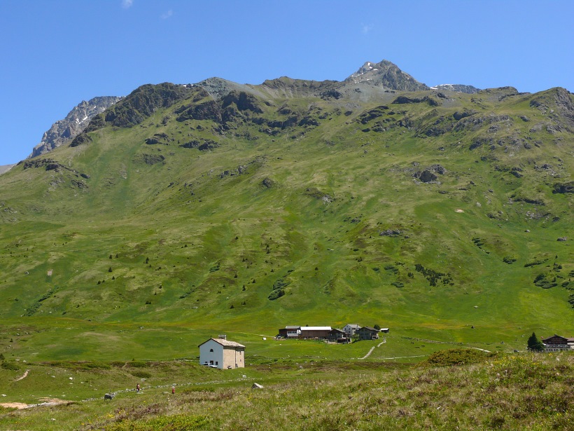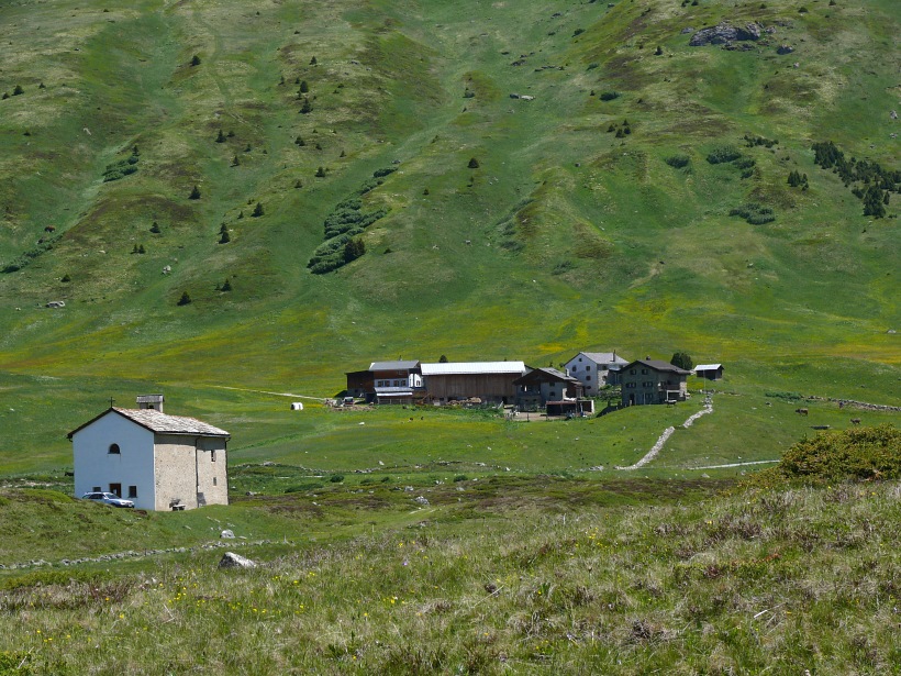 Route | Parkplatz vor Mulegns (1430 m) → Mulegns → Sur → Alp Flix 🍷 → Tgalucas → Tellers Davains → Falotta (Pass: 2460 m) |