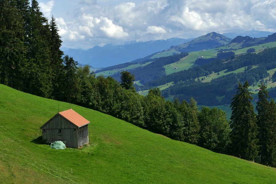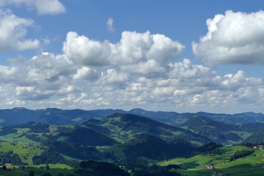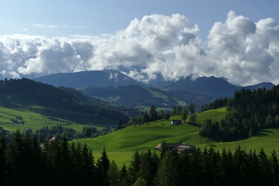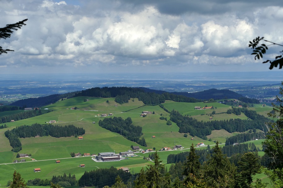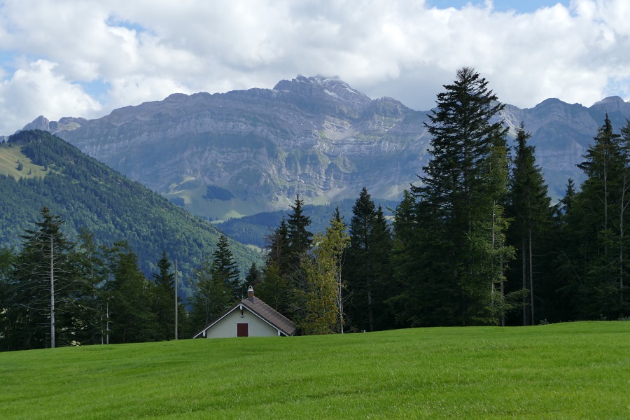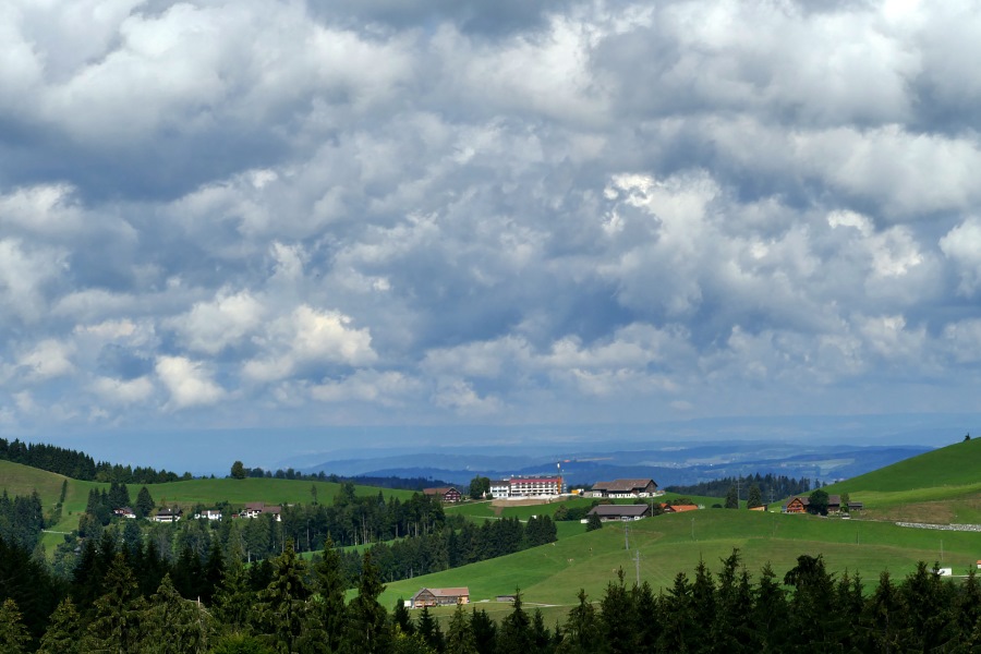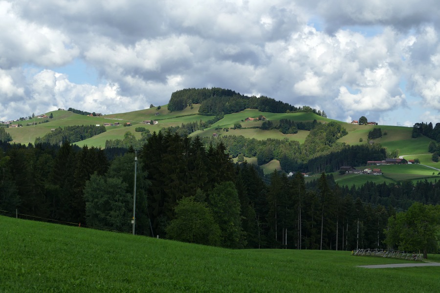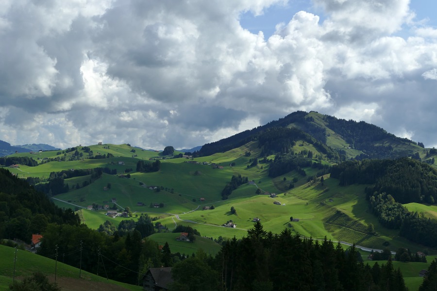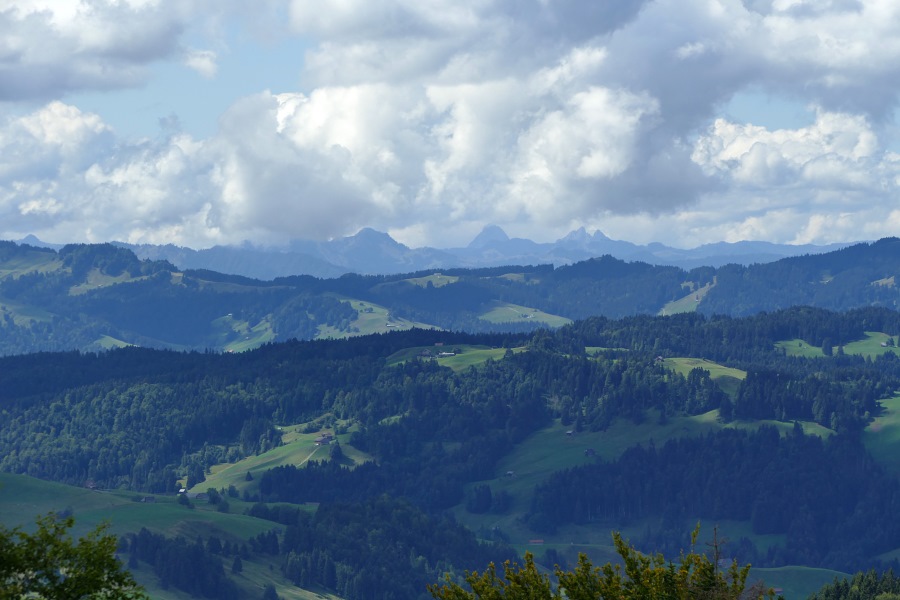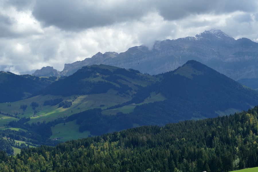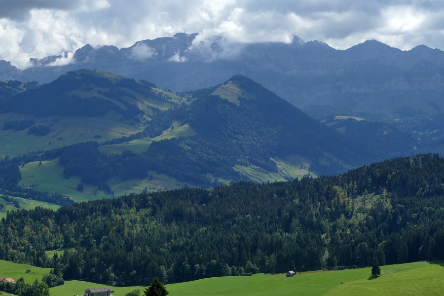 Blick zum Alpstein mit dem noch wolkenverhangenen Säntis