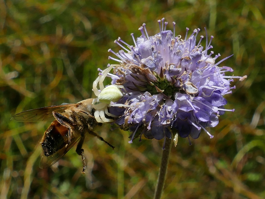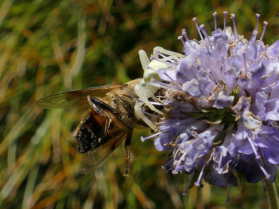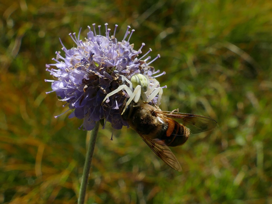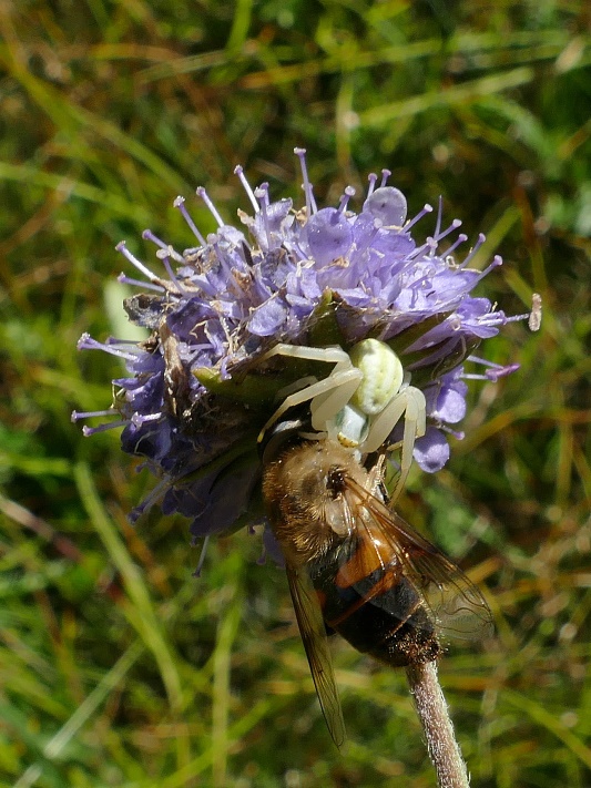 Die Krabbenspinne dagegen hat bereits ihr Mittagsmahl gefunden.