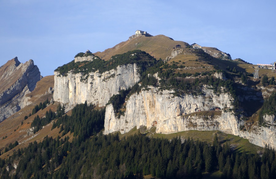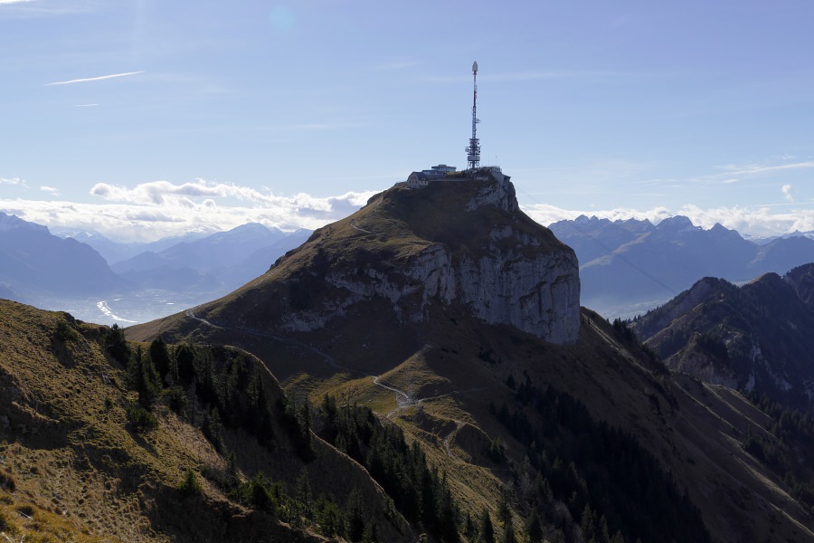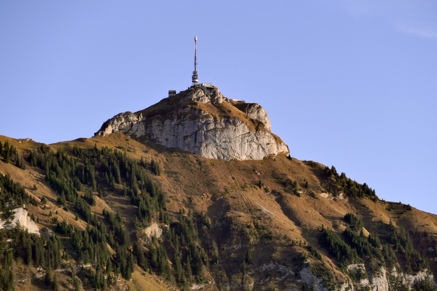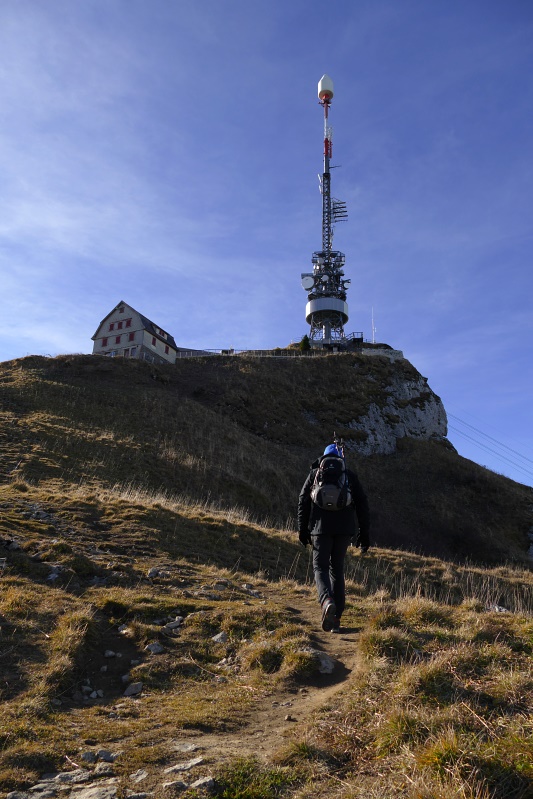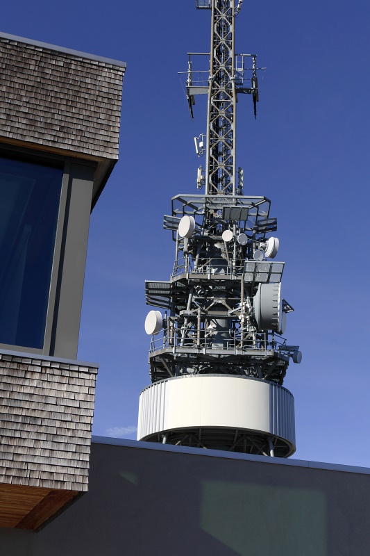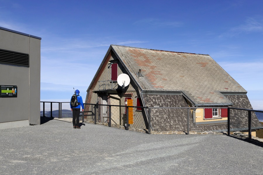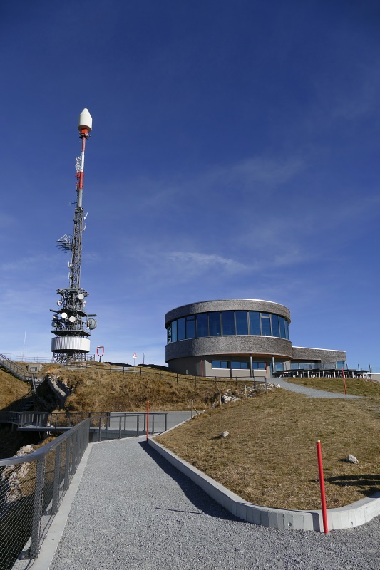 Der Mastaufbau am Hohen Kasten und das ursprüngliche Gebäude.