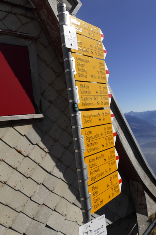 Wegweiser am Sattel, diesmal haben wir für den Abstieg vom Drehrestaurant den "Normalweg" genommen.