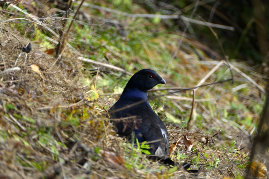 Ein Schneehuhn, noch im Sommerkleid, bleibt fast seelenruhig sitzen und beäugt uns, bis es dem Huhn doch nicht ganz geheuer wird und es doch noch wegfliegt.