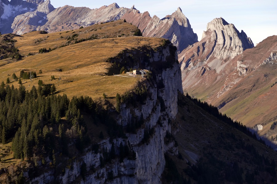 Alp Sigel mit der Zahmen Gocht und der Bergstation für die Lastenseilbahn.