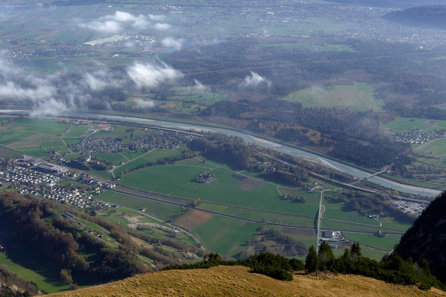 Blick nach Osten Richtung Feldkirch, hinten die markante Pyramide der Zimba.