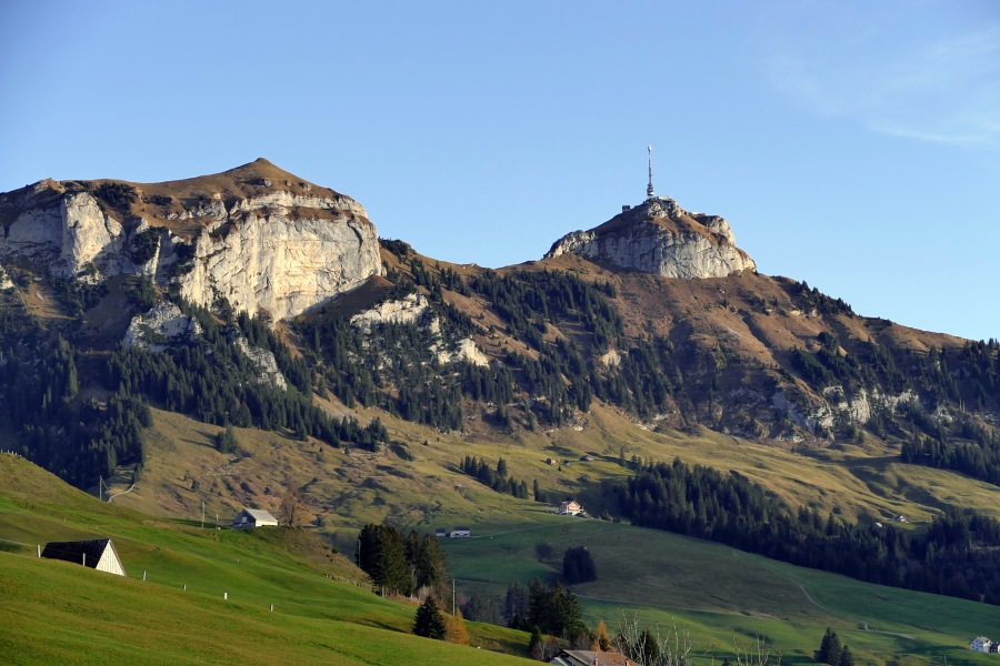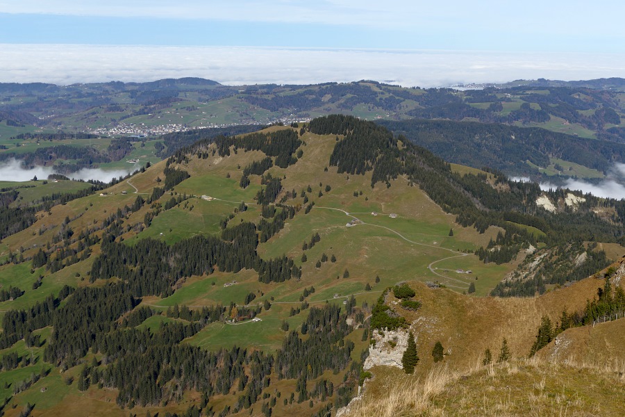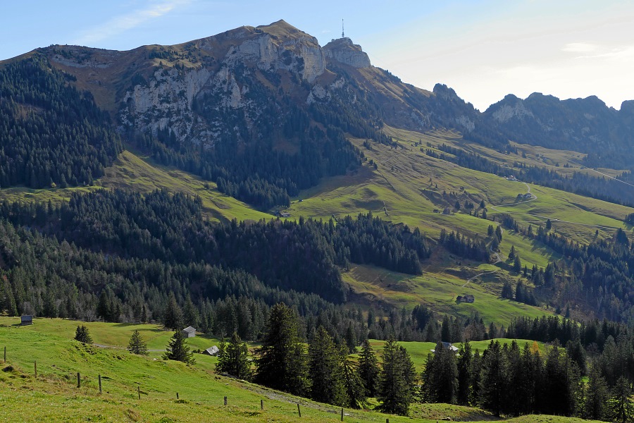 Chlosterspitz, dahinter der Rücken, der zur Hundwiler Höhi führt.