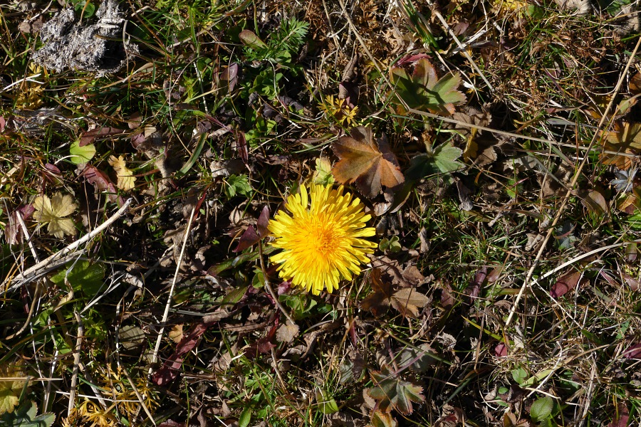 Ganz eng schmiegt sich in dieser Höhe die löwenzahnähnliche Blüte an den Untergrund an.