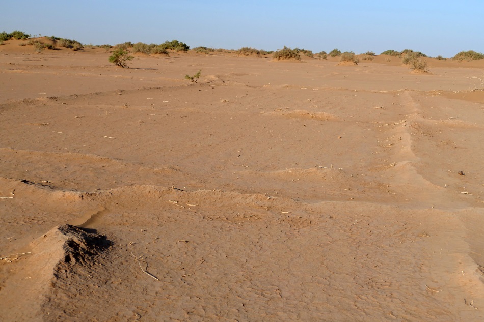 trockengefallene Oasen - Felder; zur leichteren und effizienteren Bewässerung sind/ waren die einzelnen Felder von entsprechende Erhebungen gesäumt