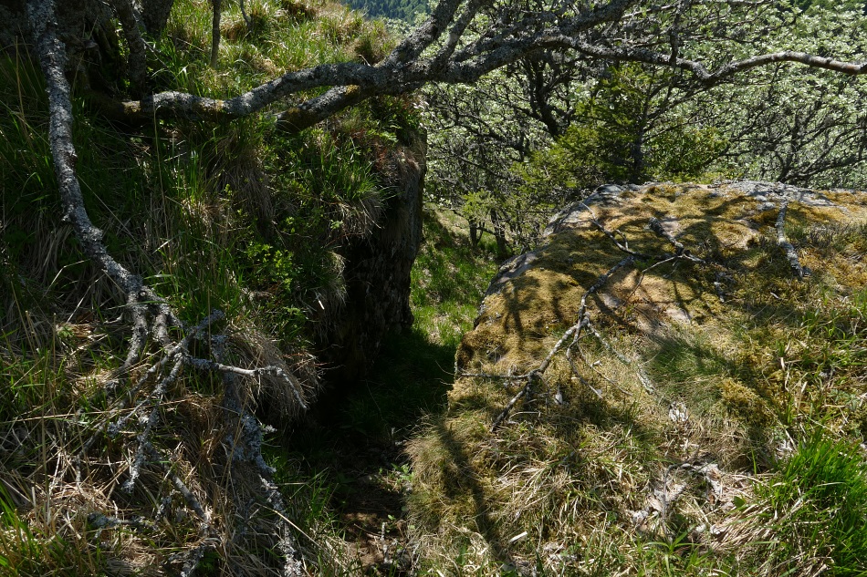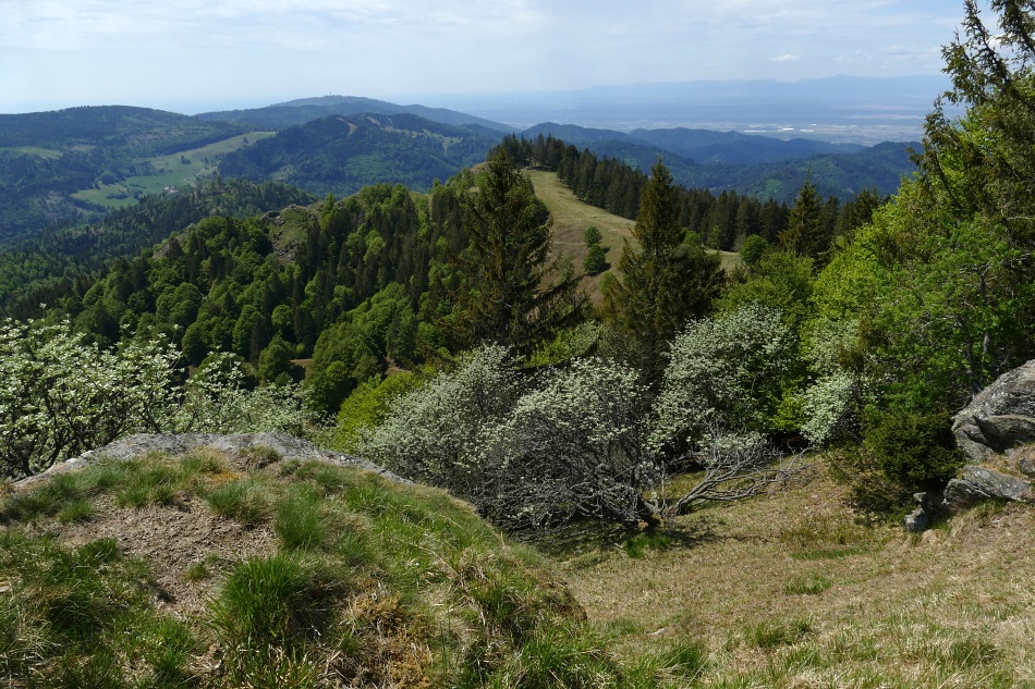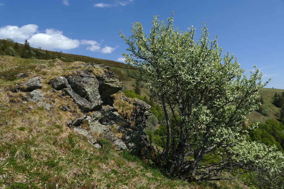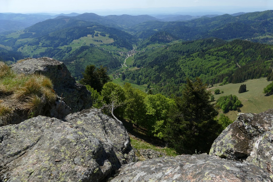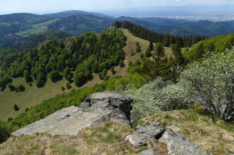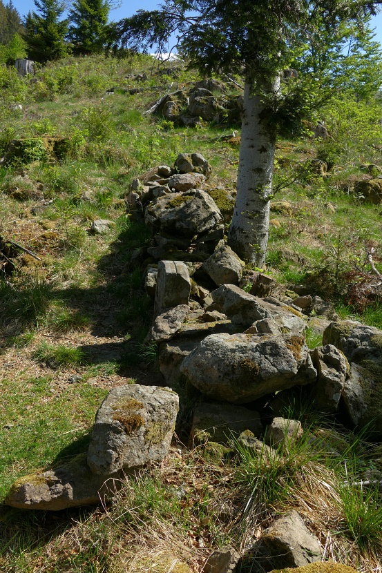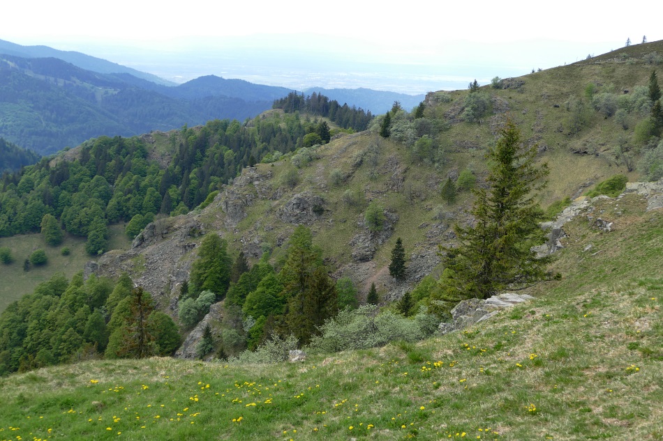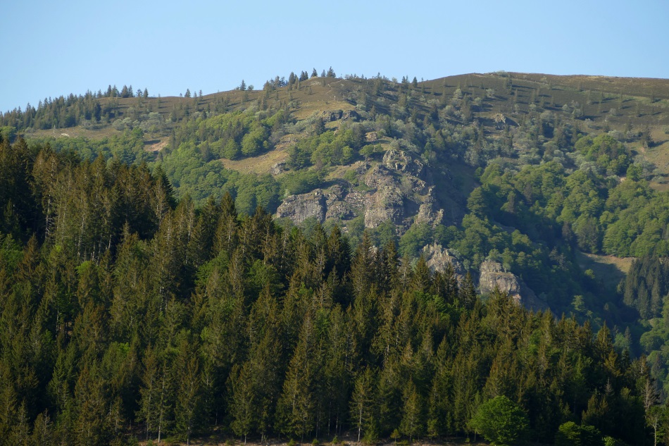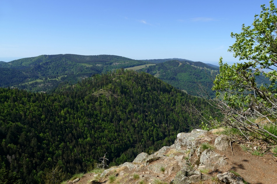 Felsen der Hohen Kelch, unterhalb denen der weitere Wanderweg verlaufen wird.