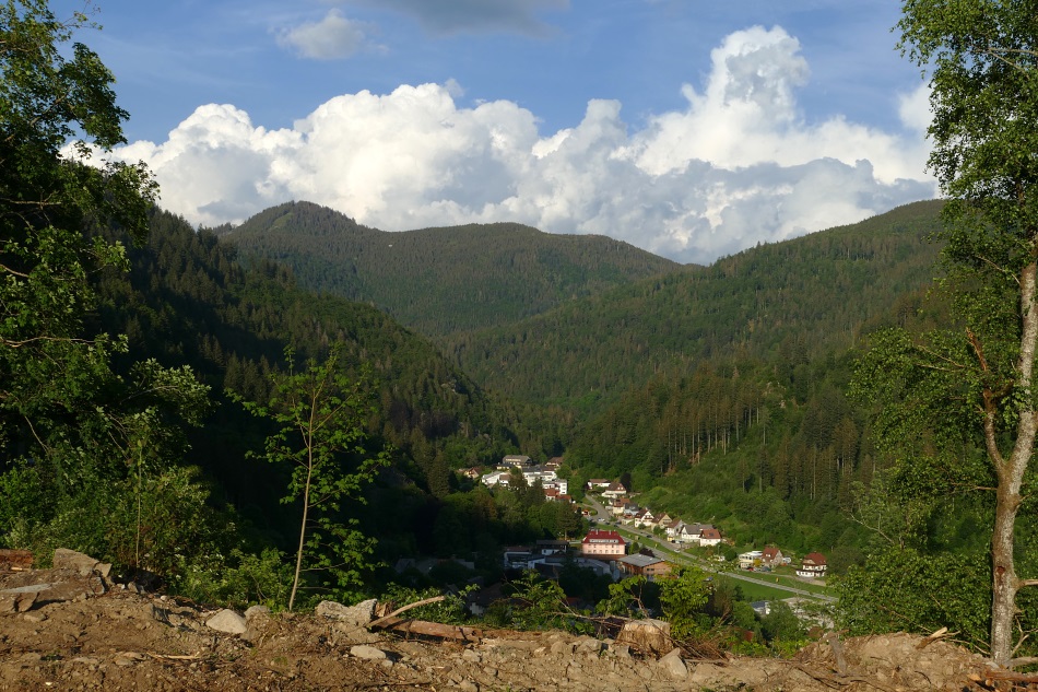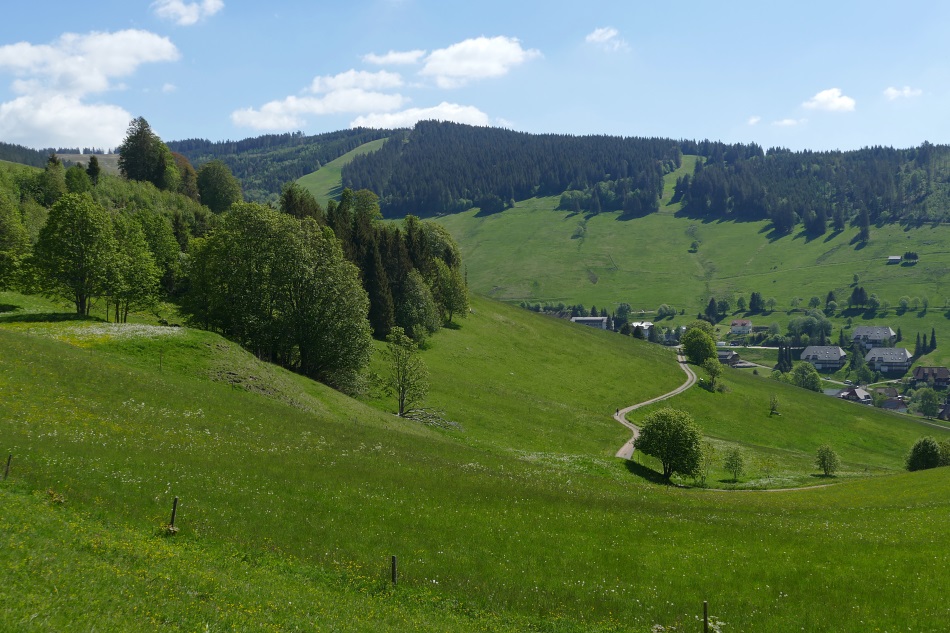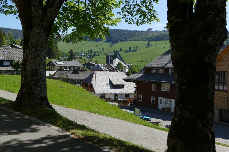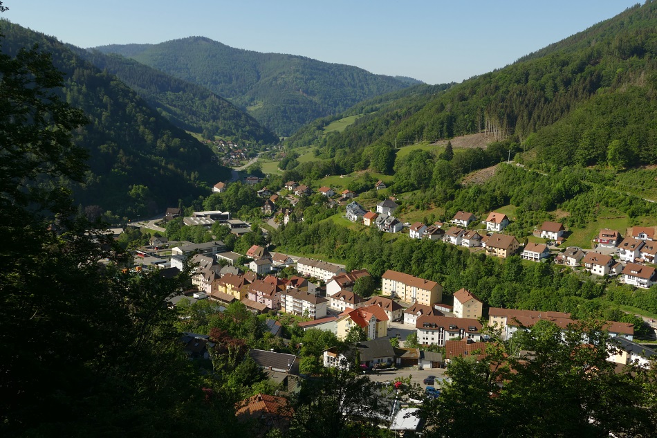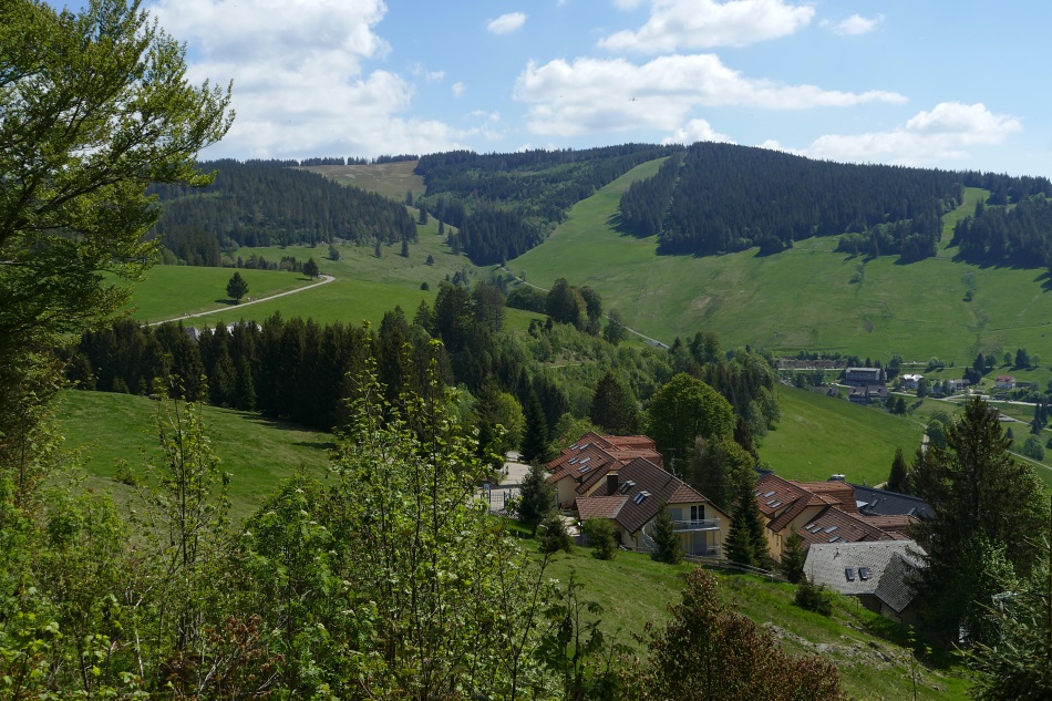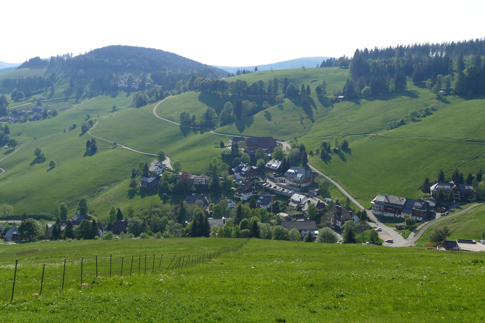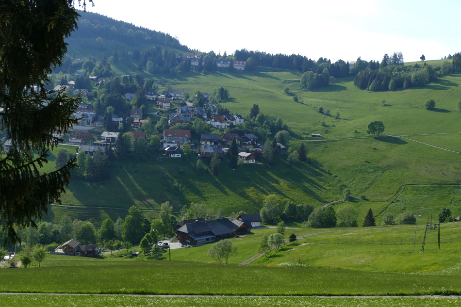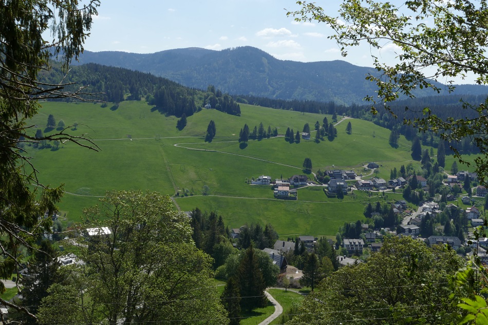 Blick von hoher Warte über Todtnau hinweg. An diesem Gegenhang, Hasenhang mit Namen, fährt man - immer am Waldrand entlang - mit Deutschlands spektakulärster Rodelbahn mit Karacho auf einer Strecke von 2.9 km ins Tal.