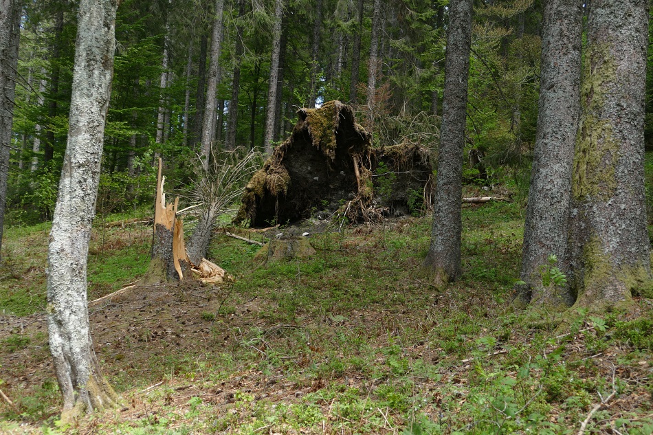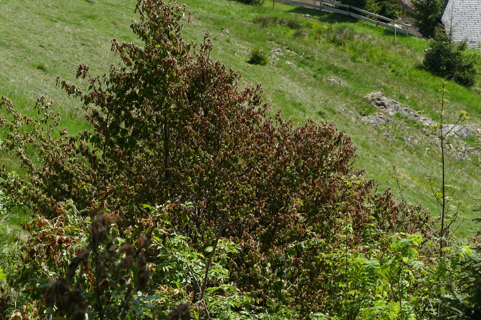 Durch Mai-Fröste sind hier die frisch ausgetriebenen Buchenblätter teilweise oder sogar ganz erfroren. Getroffen hat es fast ausschließlich nur Buchen, sie werden neu austreiben müssen um zu überleben.