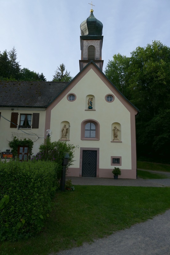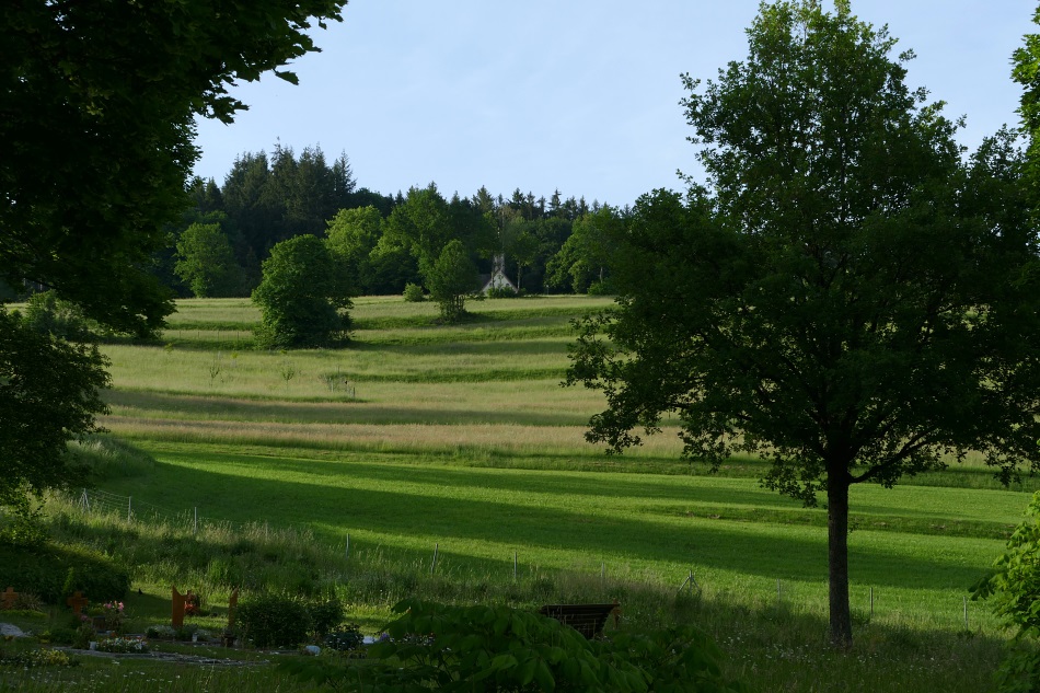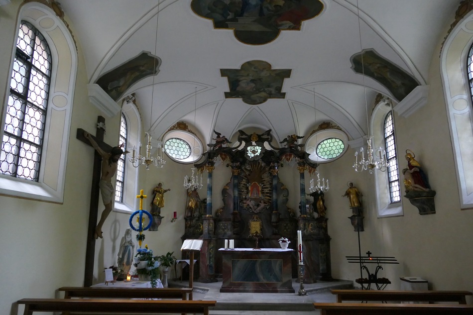 Vom Startpunkt am Wanderparkplatz beim Friedhof aus ist das erste Ziel, die barocke Kapelle Giersberg, bereits zu sehen.