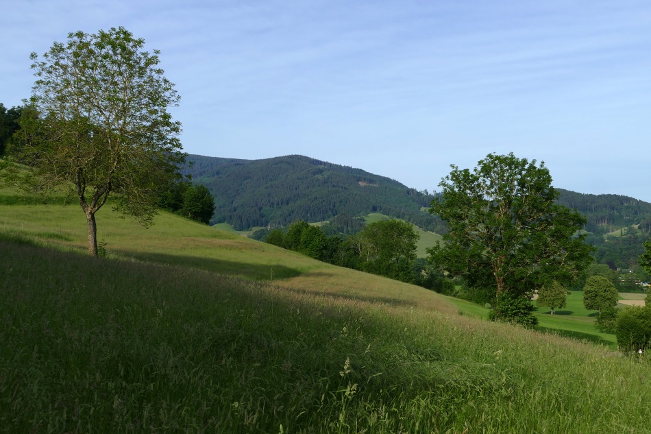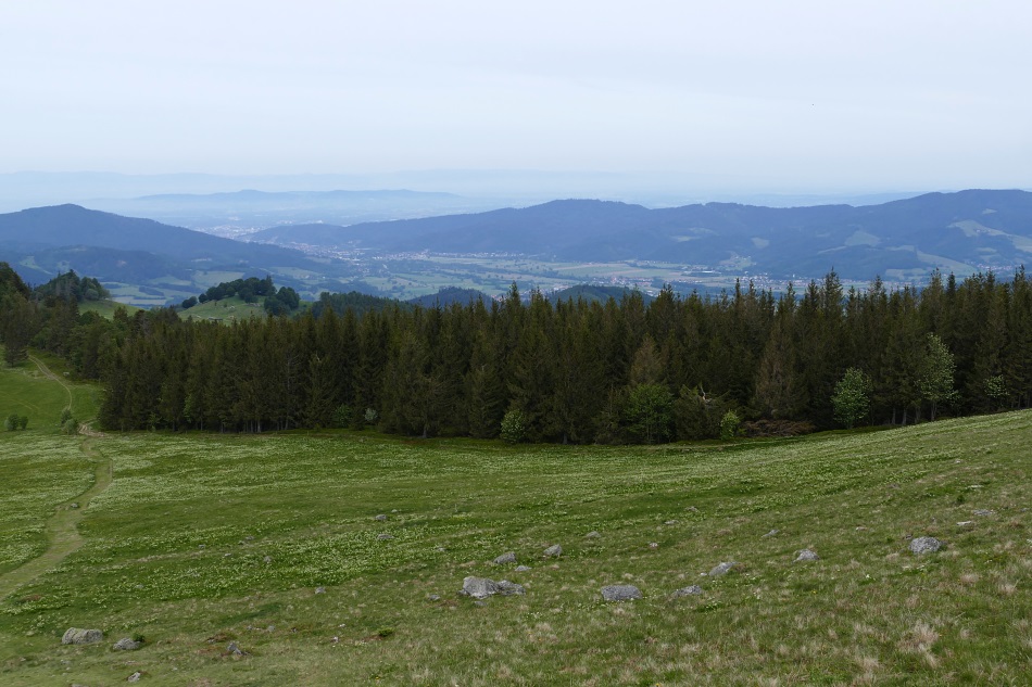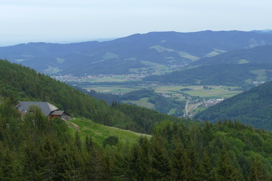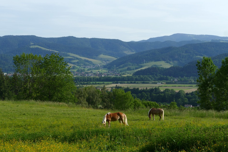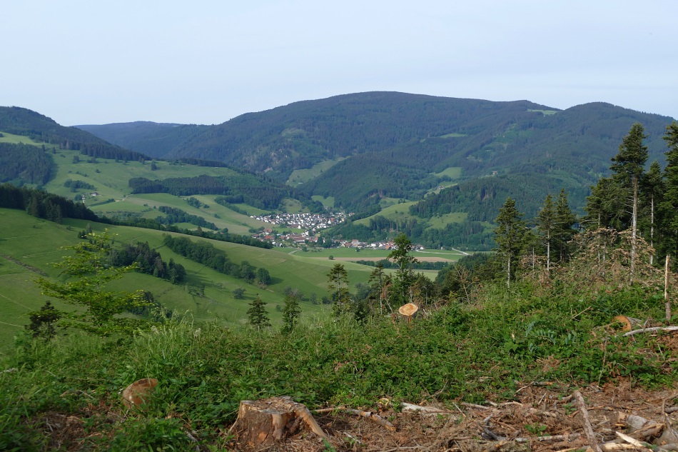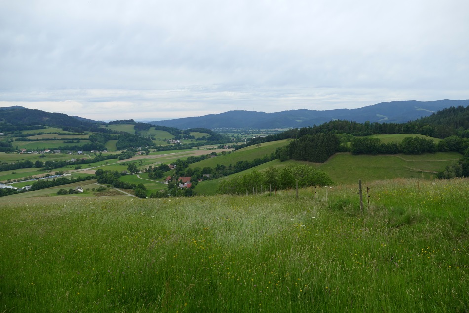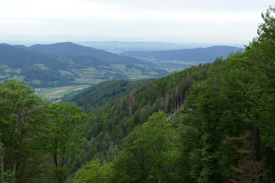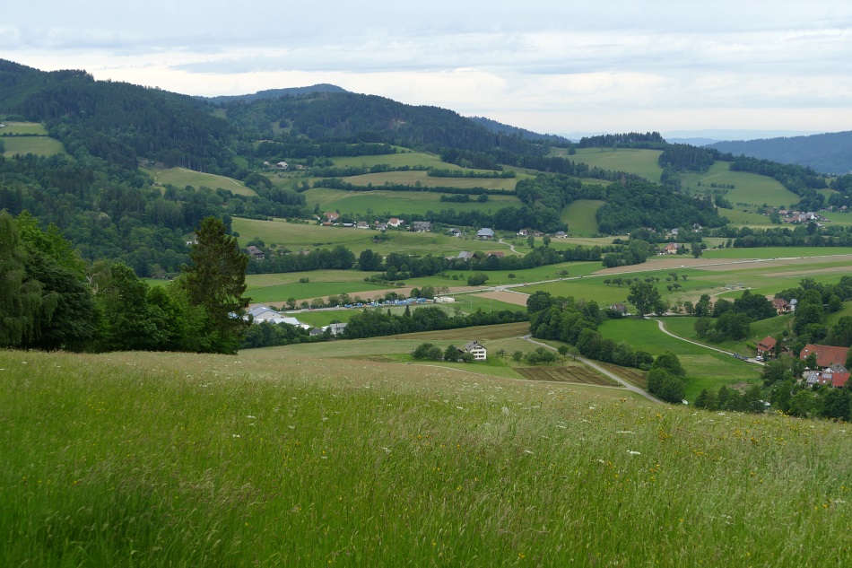Zastlertal und darüber hinaus. Im Tal liegt Oberried, dahinter geht es Richtung Schauinsland.