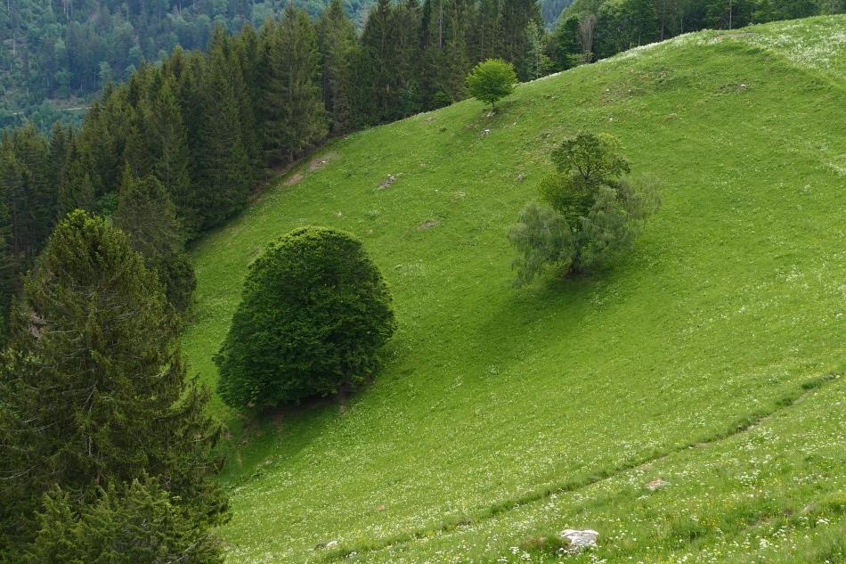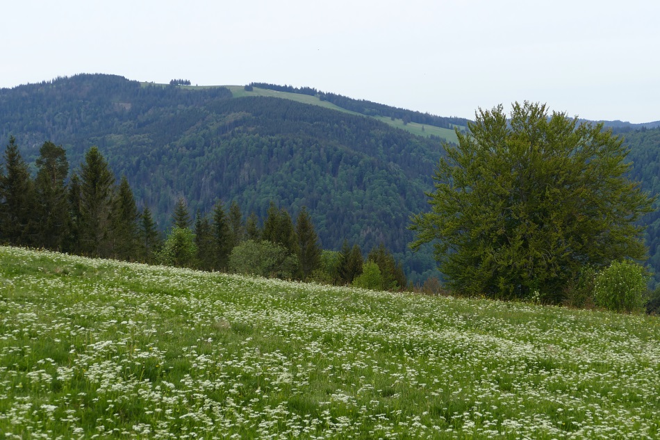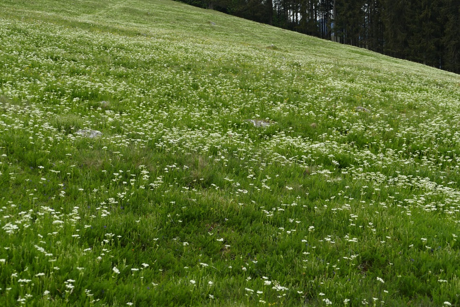 Wiesen voller blühender Bärwurz fallen immer wieder ins Auge