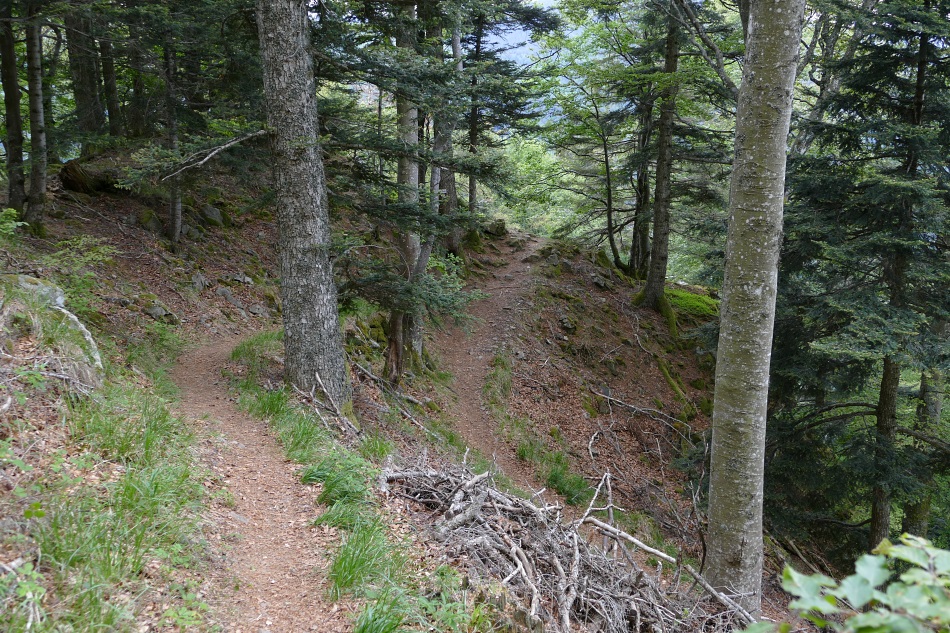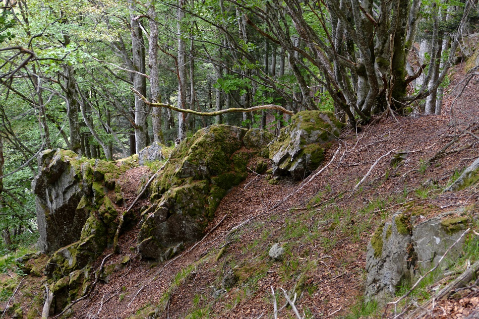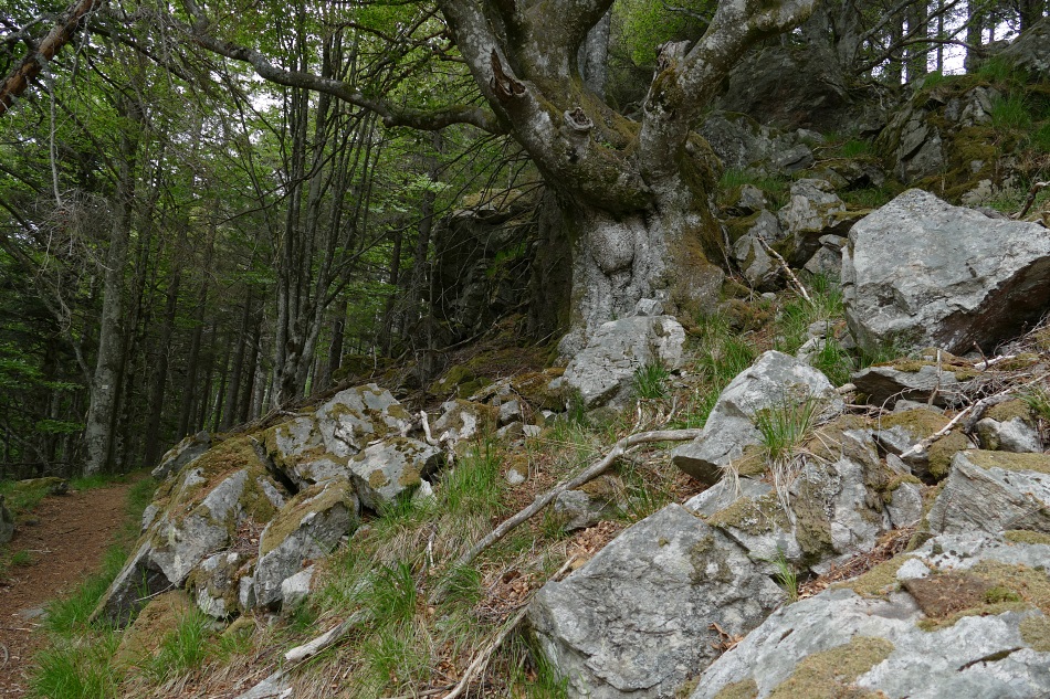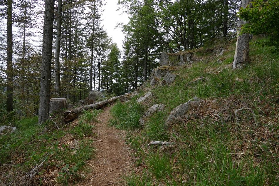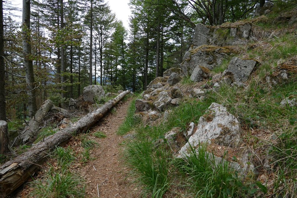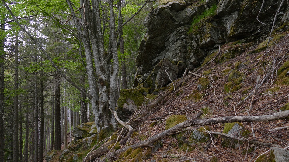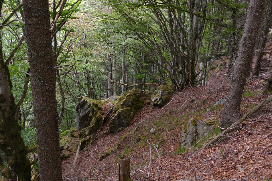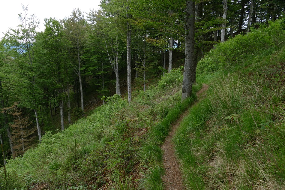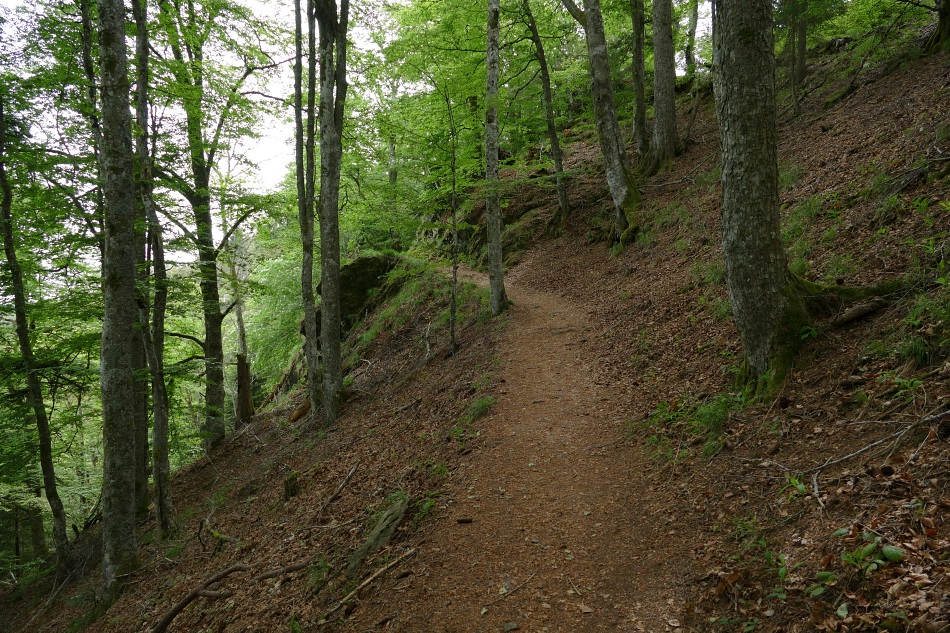 schöner Wanderweg durch die buchendestandene Bergflanke