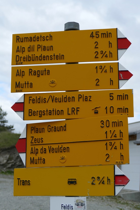 Route | Feldis, Talstation → Feldis, Dorf → bei der Alp Raguta → Alp dil Plaun → Culm Ault → bei der Windegga → Culm Ault → Pardatsch → Plaun dils Mats → Retga→ Feldis, Talstation |