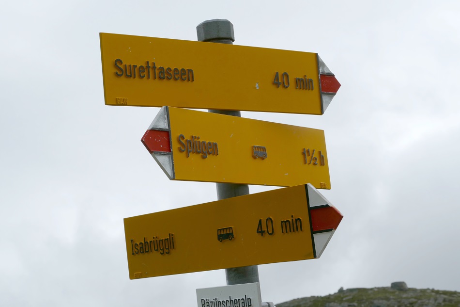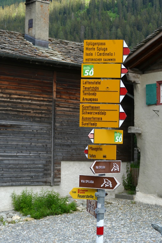 Route | Splügen → Fugschtwald → Unterer und Oberer Surettasee → Abstieg Richtung Leimtobel (Leimtobelroute momentan unbegehbar) → Rosschopf → Göriwald → Strala → Splügen |