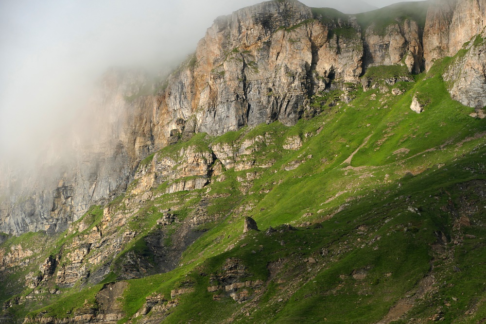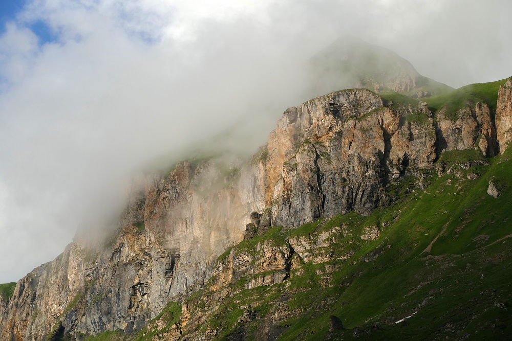 Num geht es zunächst auf einem nur leicht ansteigenden Fahrweg über Laui und die Rinderalp nach Werdenböl. Linkerhand dominieren nun die Steilwände um den Hochfinseler.