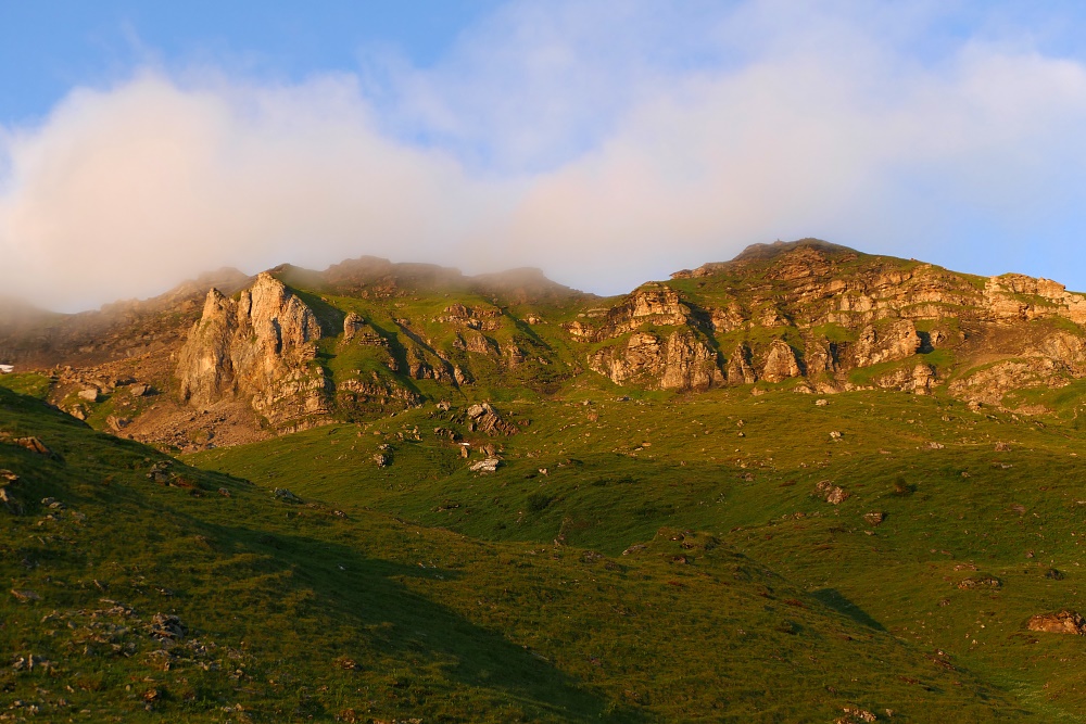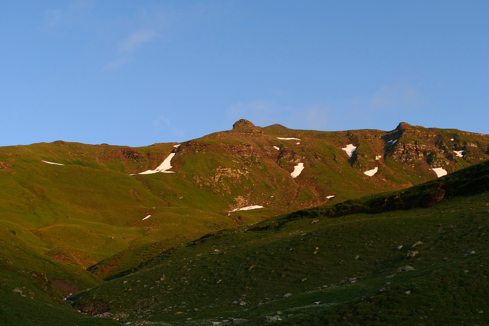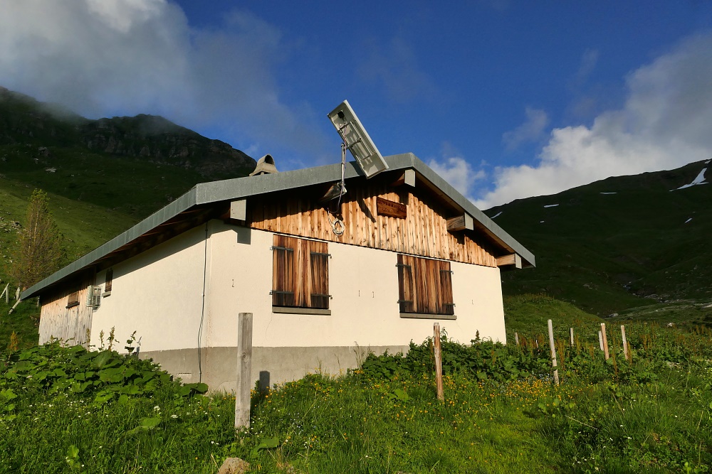 Für heute reicht diezurückgelegte Strecke. Da die Alpe noch nicht bestoßen ist, nutze ich die ebene Betonplatte der Alpe Rinderfans um mein Zelt für die Nacht aufzustellen und bereite mich für die kalte Nacht, bei der sich die Temperatur bis auf fröstelnde 5°C abkühlen wird, vor.