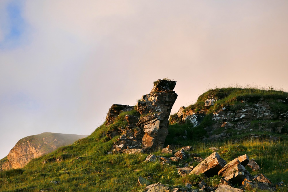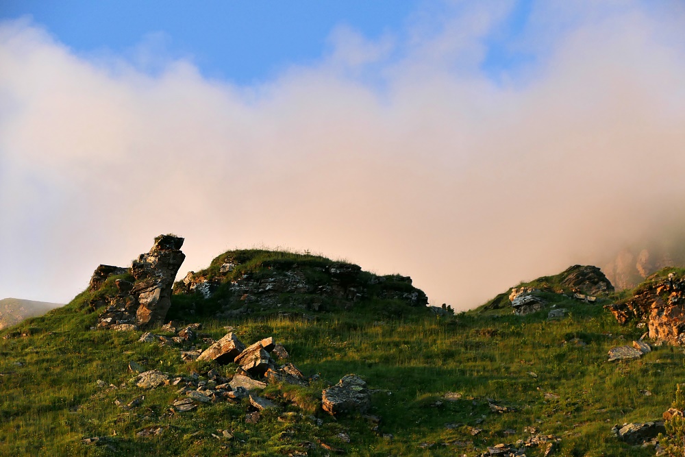 Dass das Wetter sehr instabil ist, deutet sich anhand der wabernden Wolken an, die die Felsen unterm Apöstel verdecken. Nur gelegentlich dringt die Sonne noch durch eine Wolkenlücke und es ist hier oben auch schon recht kalt geworden.
