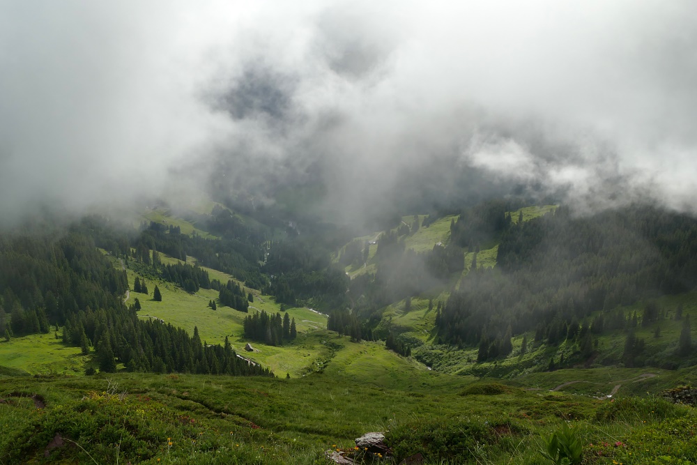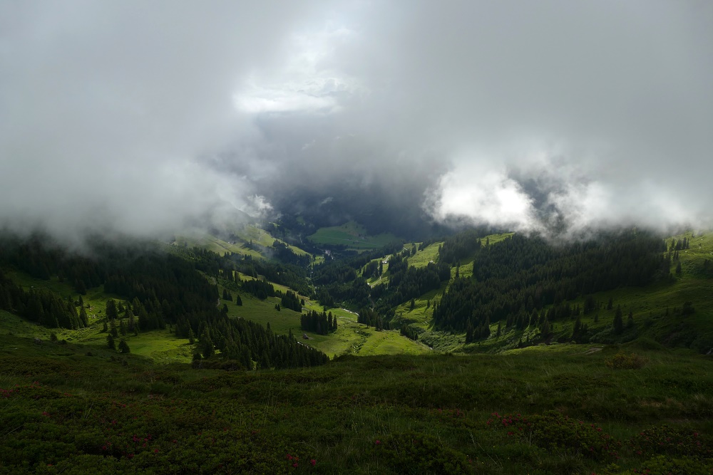 Nebel kriecht aber auch aus den Tälern hoch. Mütschüelergumen, Rainissalts und Leist sind aber schon wolkenfrei.
