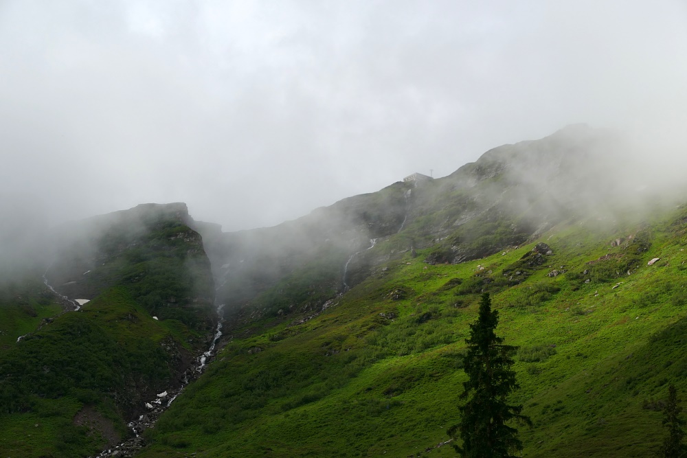 Am nächsten Morgen zeugen noch einige tiefliegende Wolken von dem Unwetter dervergangenen Nacht.