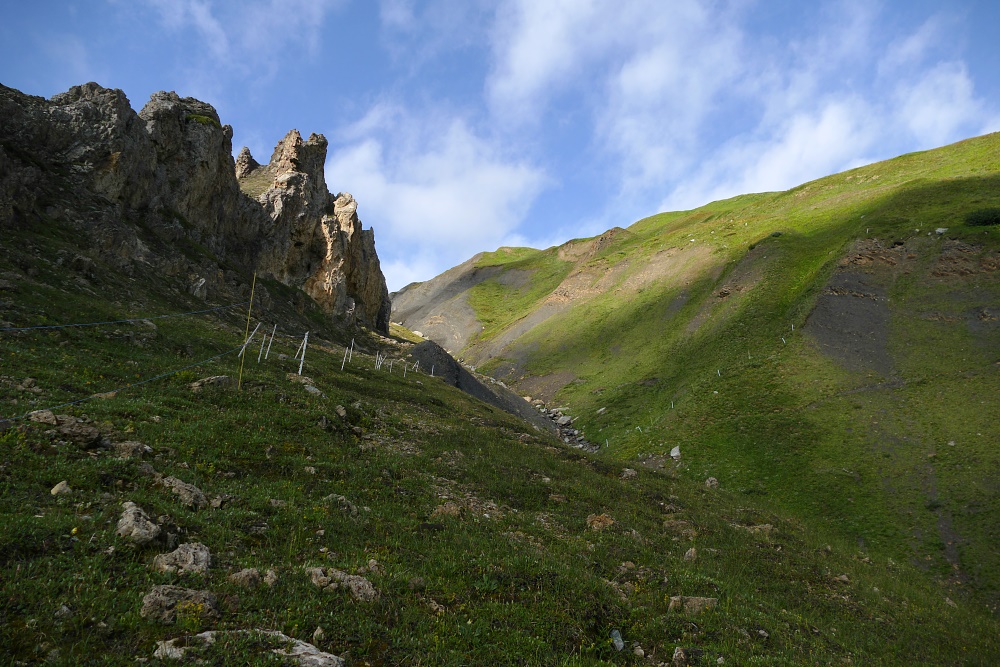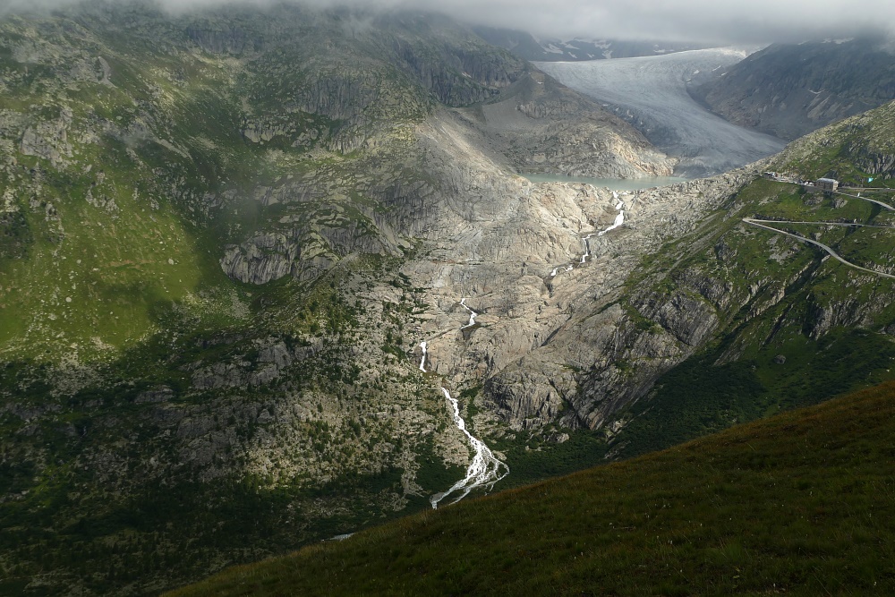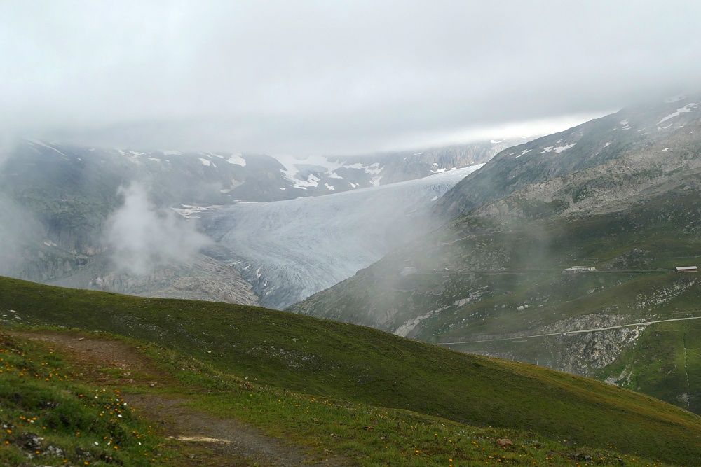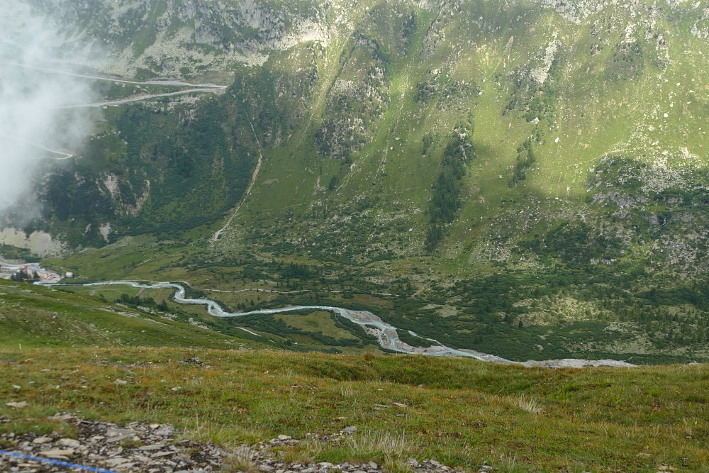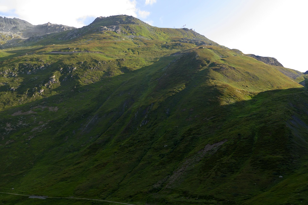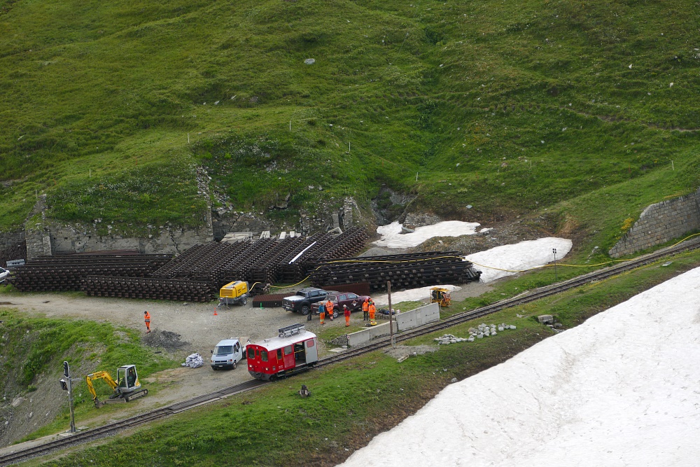 Route | Am Muttbach bei der Alpe Oberstafel (2050 m) → Furka-Dampfbahn-Tunnel (Muttbach Belvedere) → Aussichtspunkt 2510 m → Bidmer (2367 m) → Aussichtspunkt 2510 m → Am Muttbach |