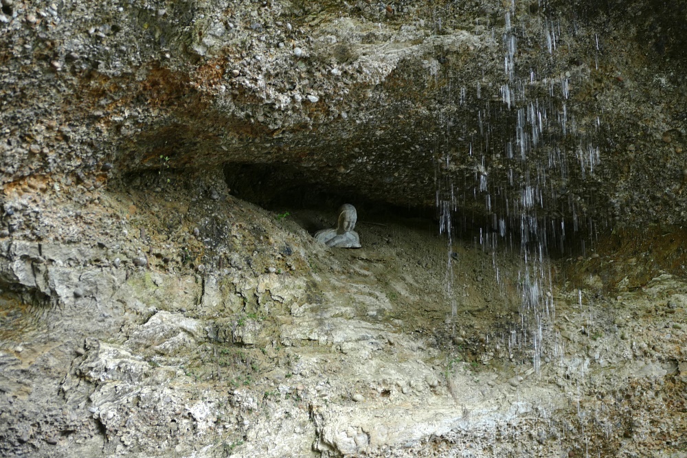die Höhlung und der "Badeteich", der sich durch die Wucht des herabströmenden Wassers gebildet hat.