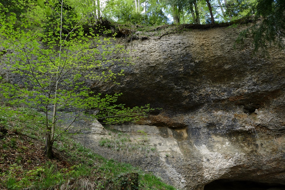 Die Nagelfluh-Grenze bildet die Decke der Höhle.