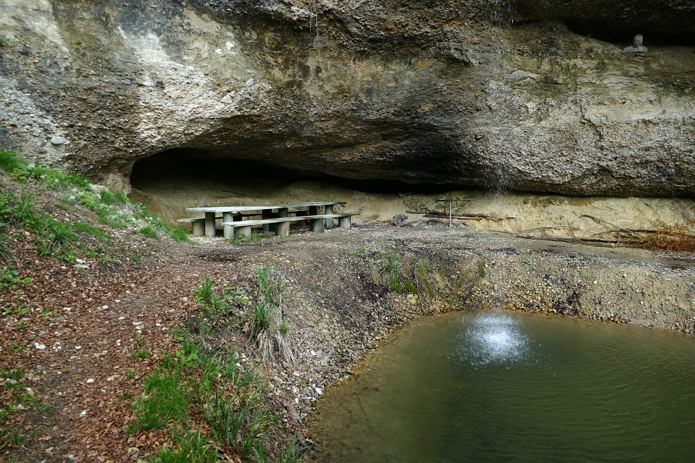 Die Höhle ist sogar ausreichend für ein Ruhebänkchen.