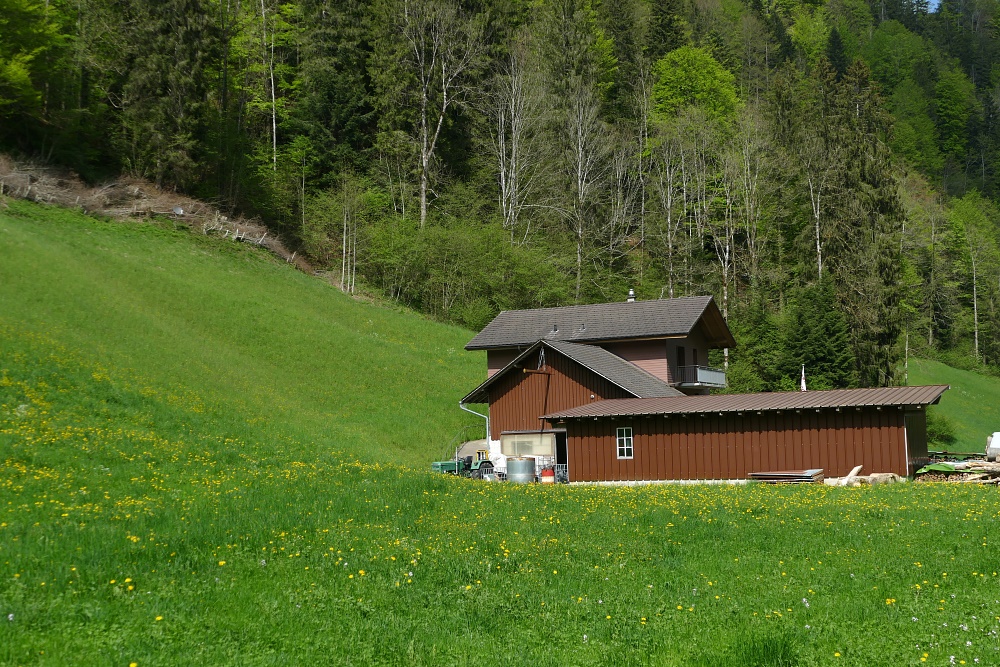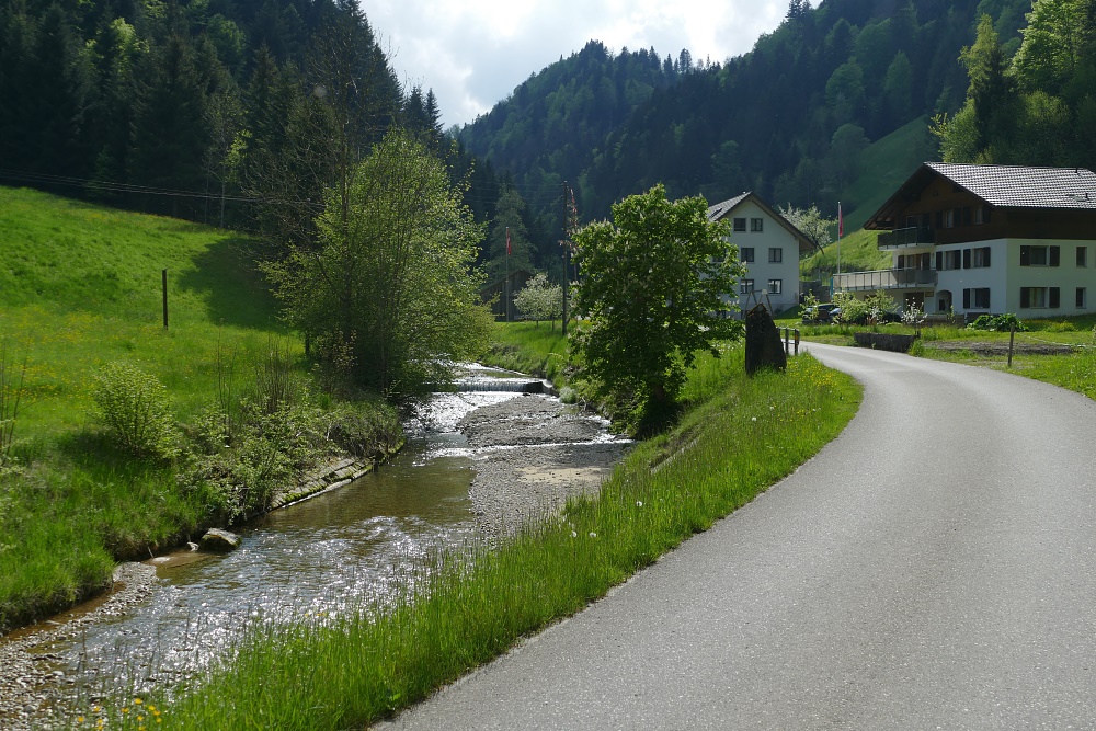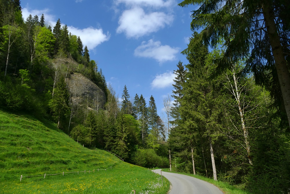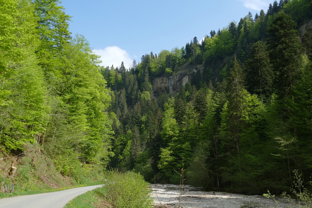 Auf dem Fahrweg geht es jetzt noch etwa 100 Höhenmeter hinunter zur Kleinen Emme.