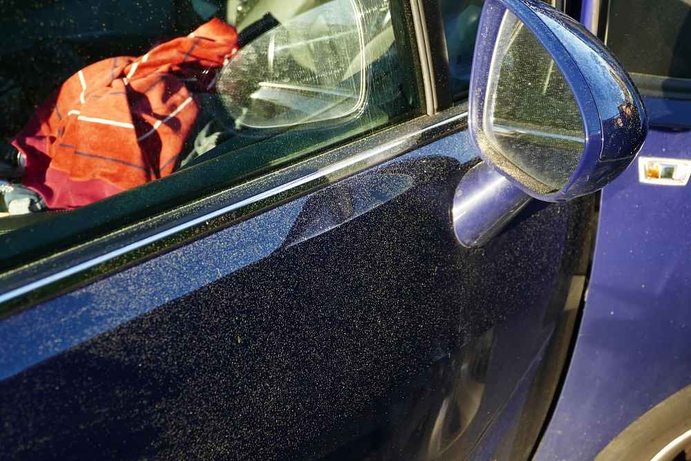 Pollenflug ist in diesen Tagen mehr als angesagt. Die Autoteile sind mit einer gelben Staubschicht überzogen.