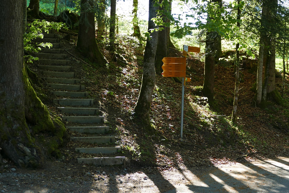 kurz darauf erreiche ich über diese Treppe wieder die Alpstraße, die mich am Morgen hoch zum Rotmoos geführt hatte.