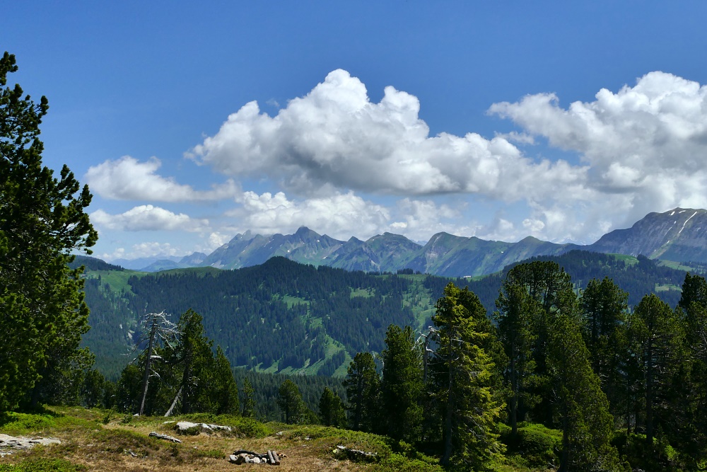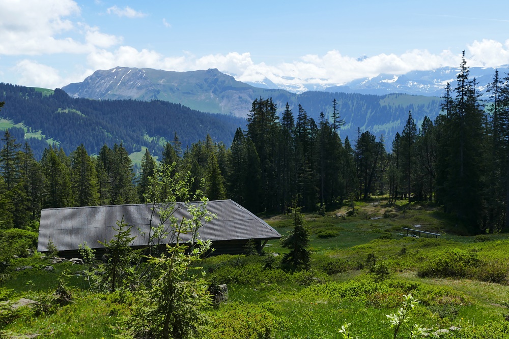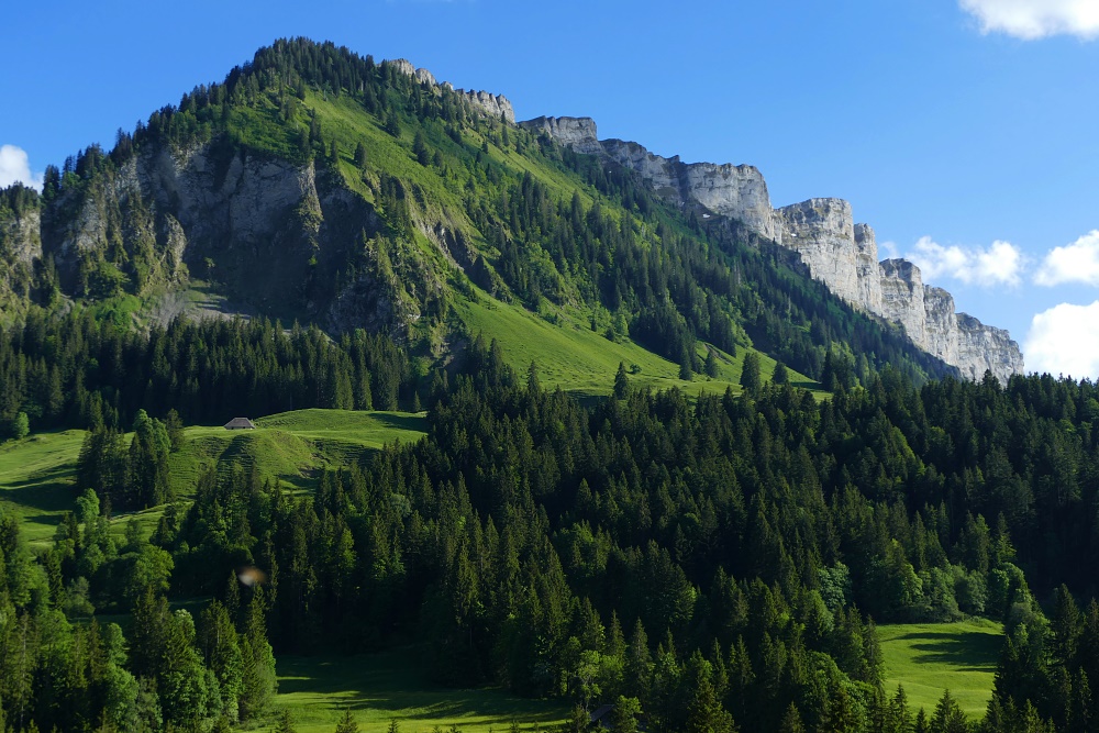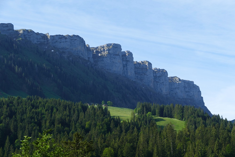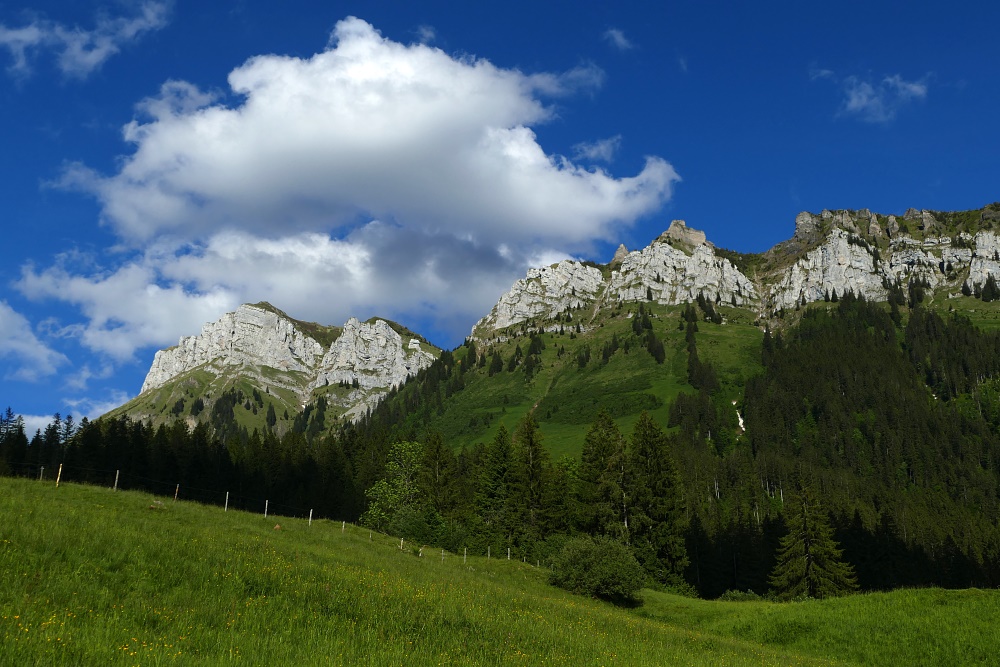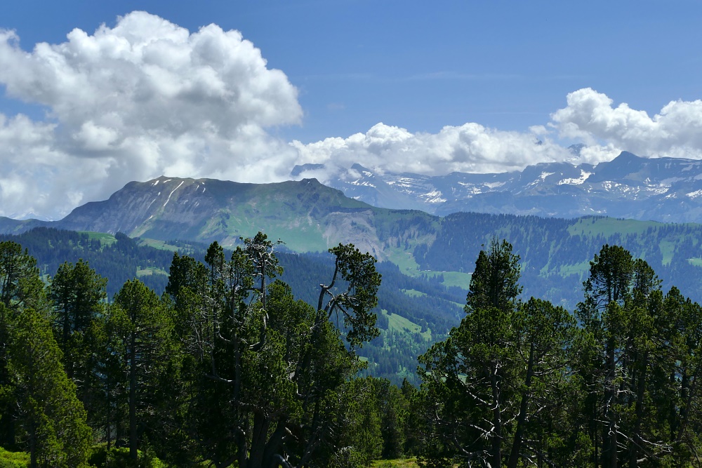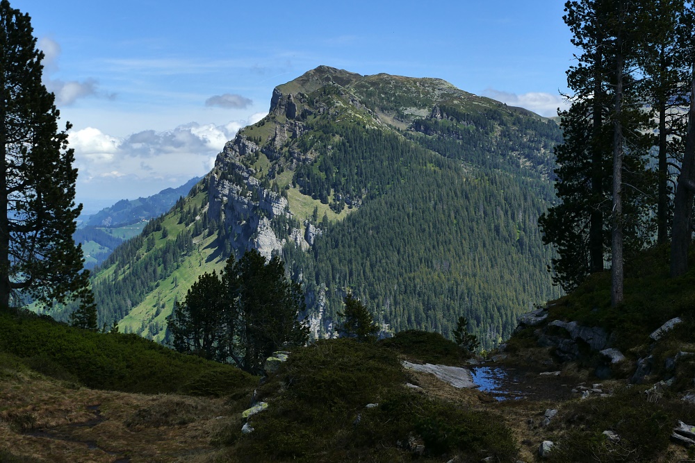 Augstmatthorn und Suggiturm, die flachen Vorberge links, im Hintergrund ist direkt neben dem Suggiturm der Wildgärst und das Gärstenhoren zu sehen.