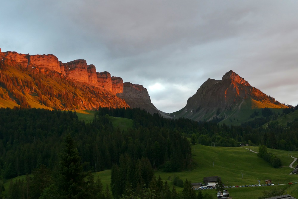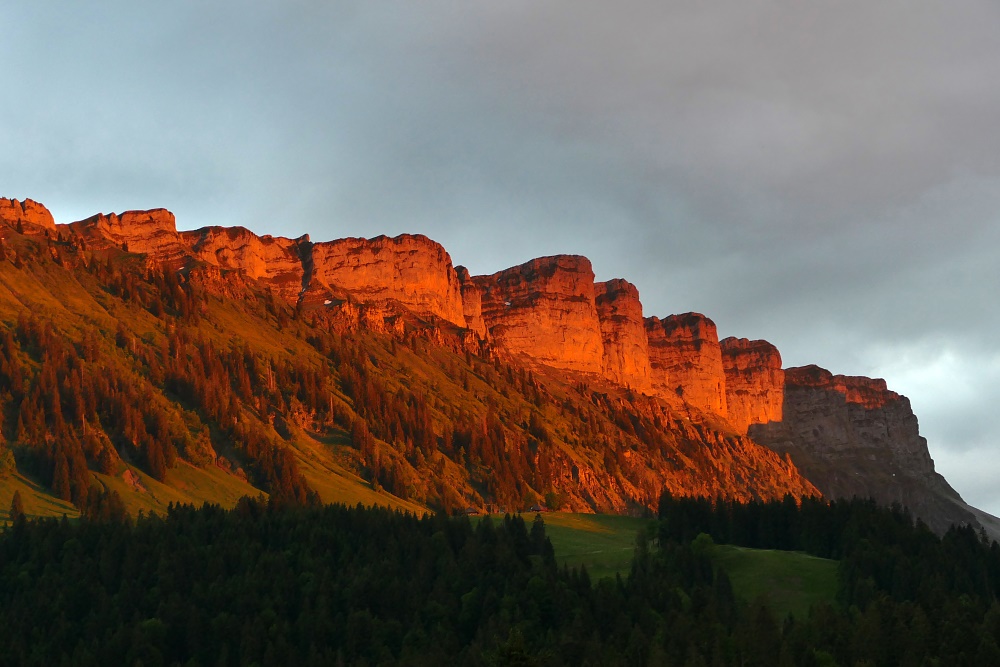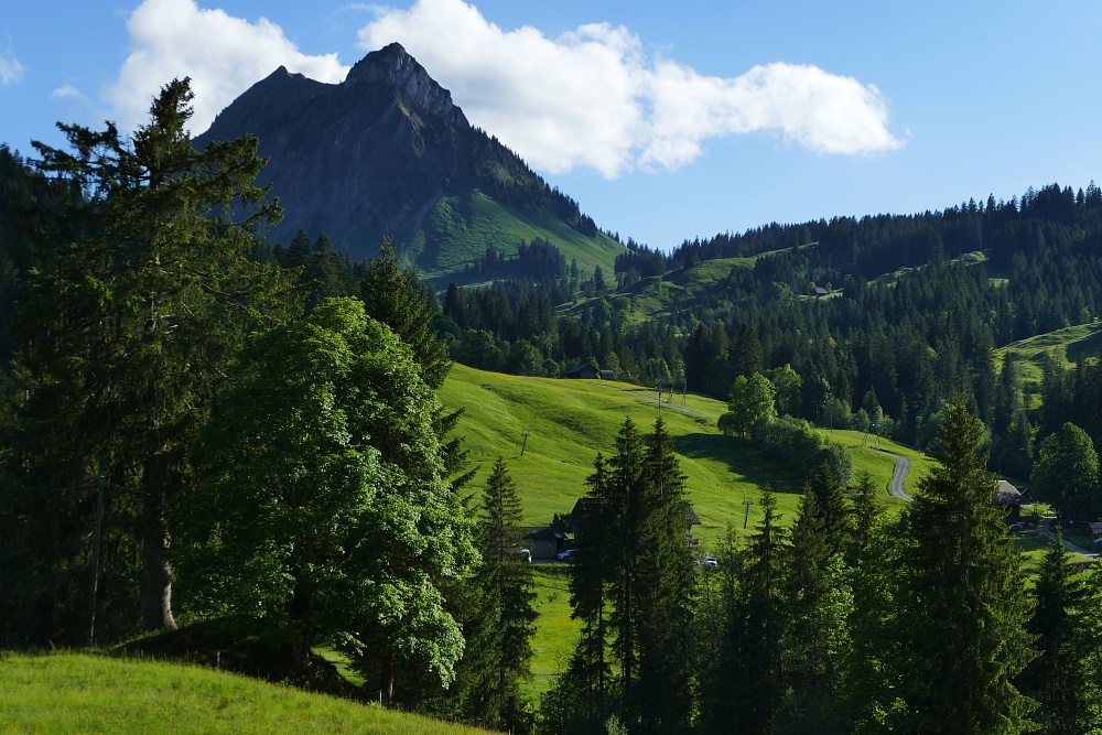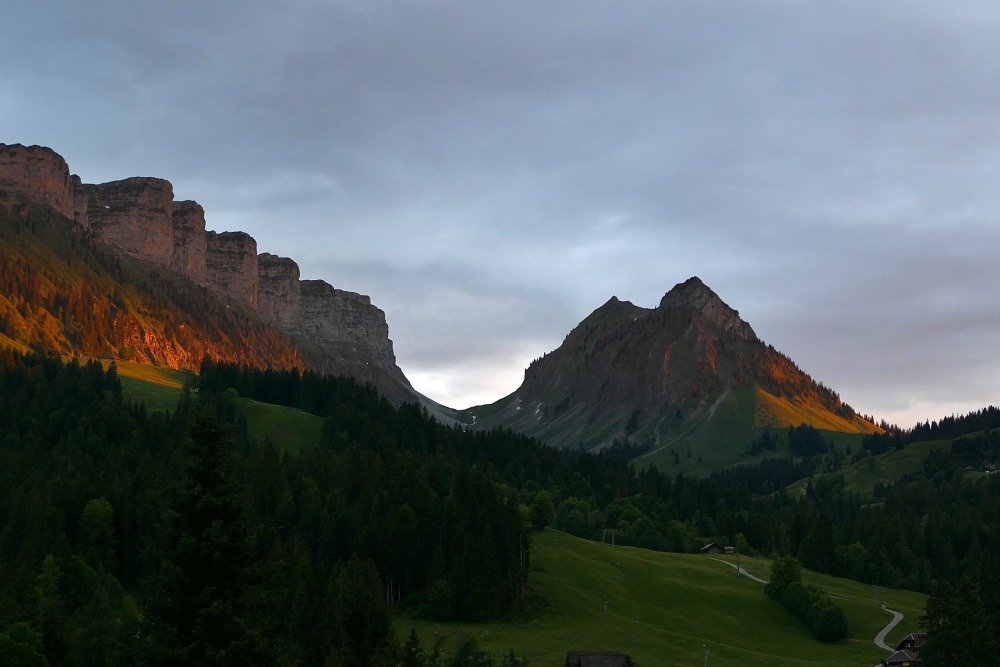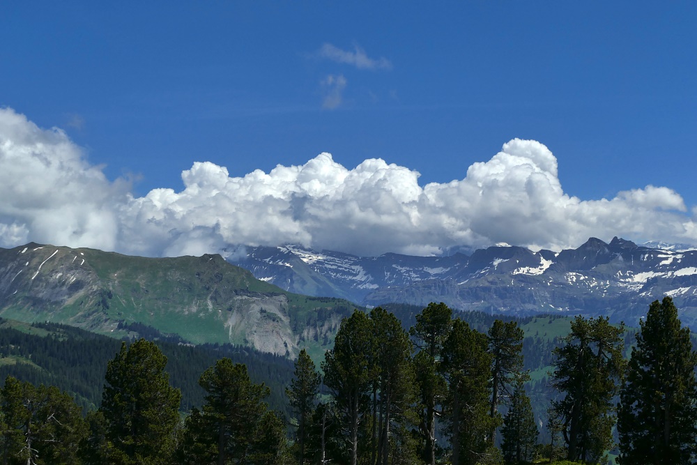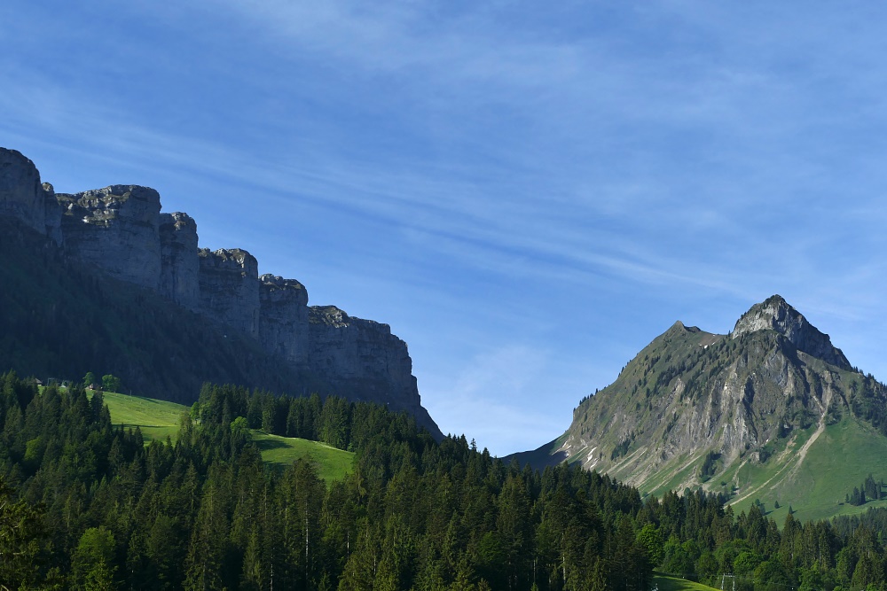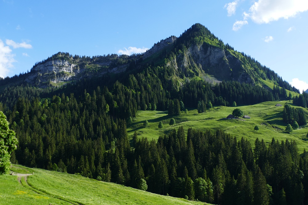 Augstmatthorn und Suggiturm, die flachen Vorberge links, im Hintergrund ist direkt neben dem Suggiturm der Wildgärst und das Gärstenhoren zu sehen.