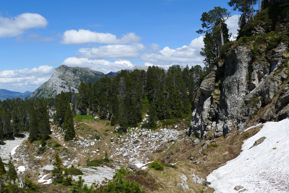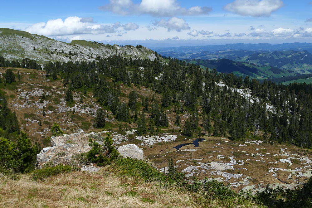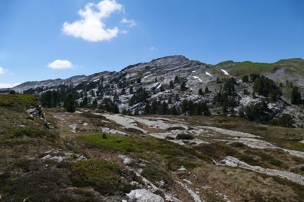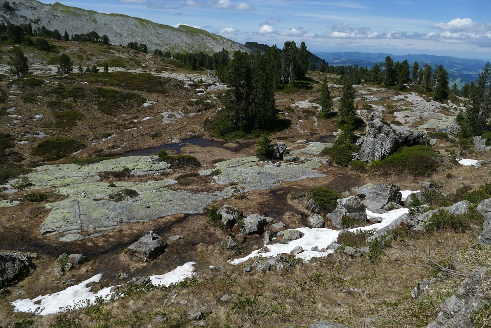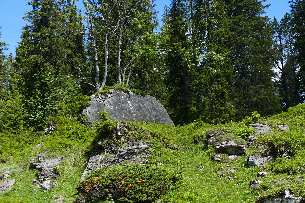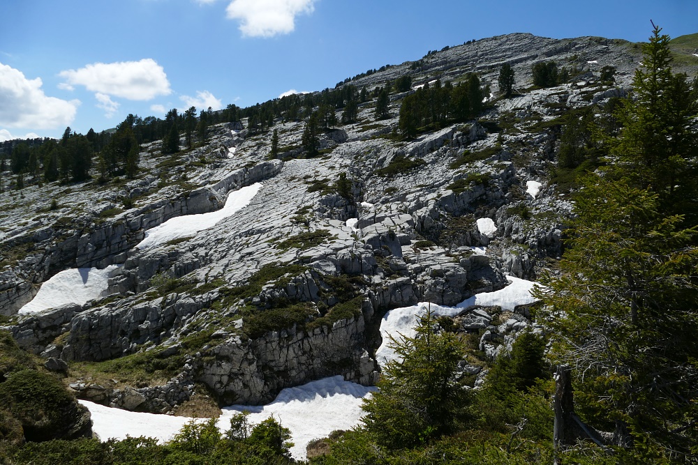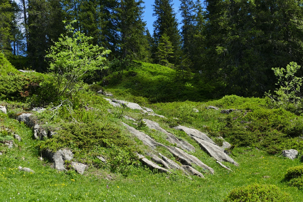 Auch hier ist die Schrattenkalk-Unterlage erkennbar, wenn auch meist von Vegetation verdeckt.