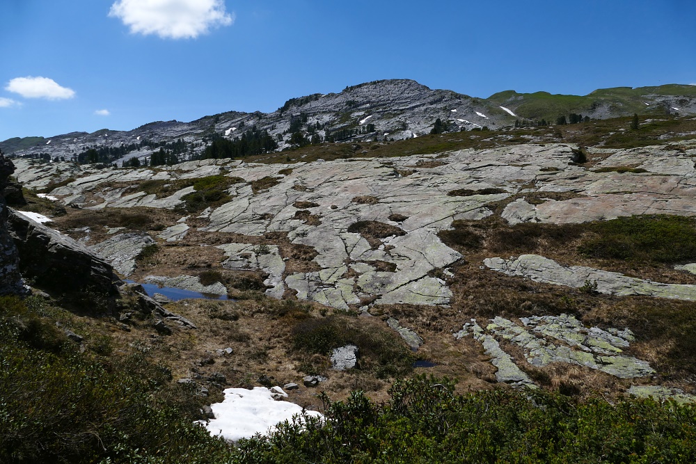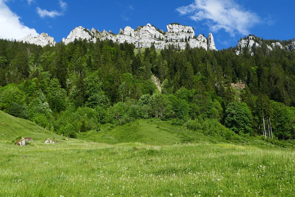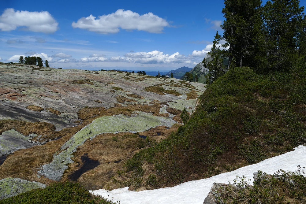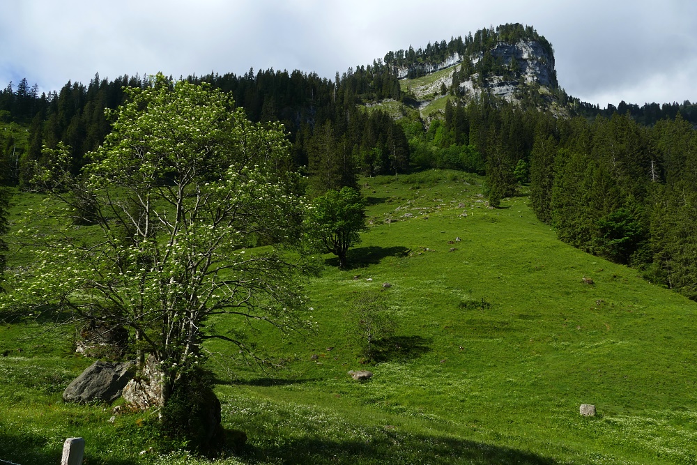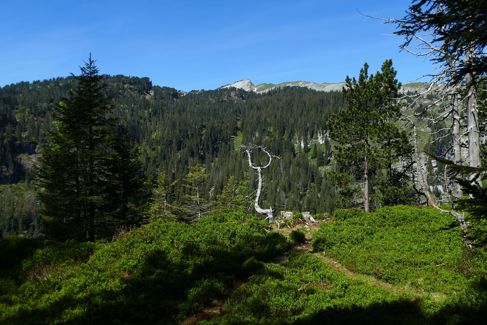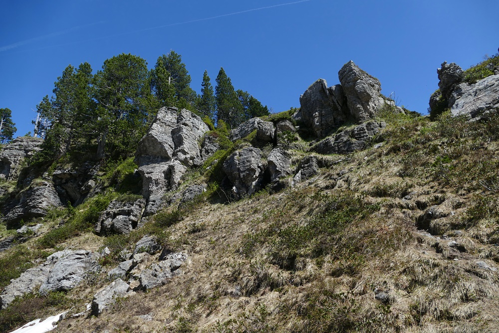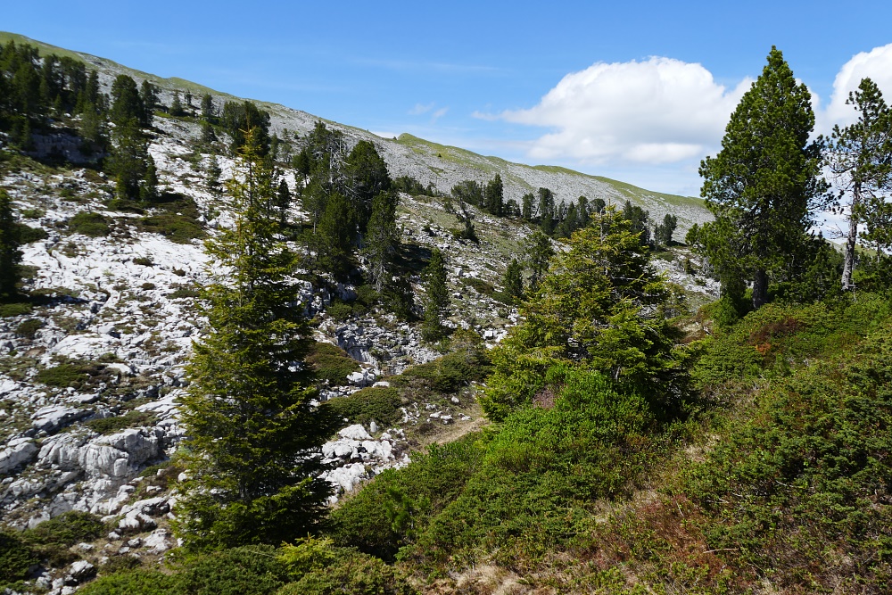 Auch hier ist die Schrattenkalk-Unterlage erkennbar, wenn auch meist von Vegetation verdeckt.