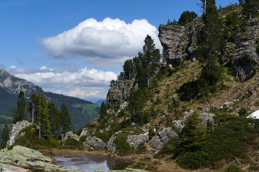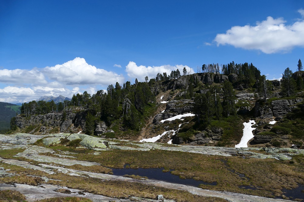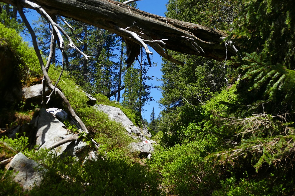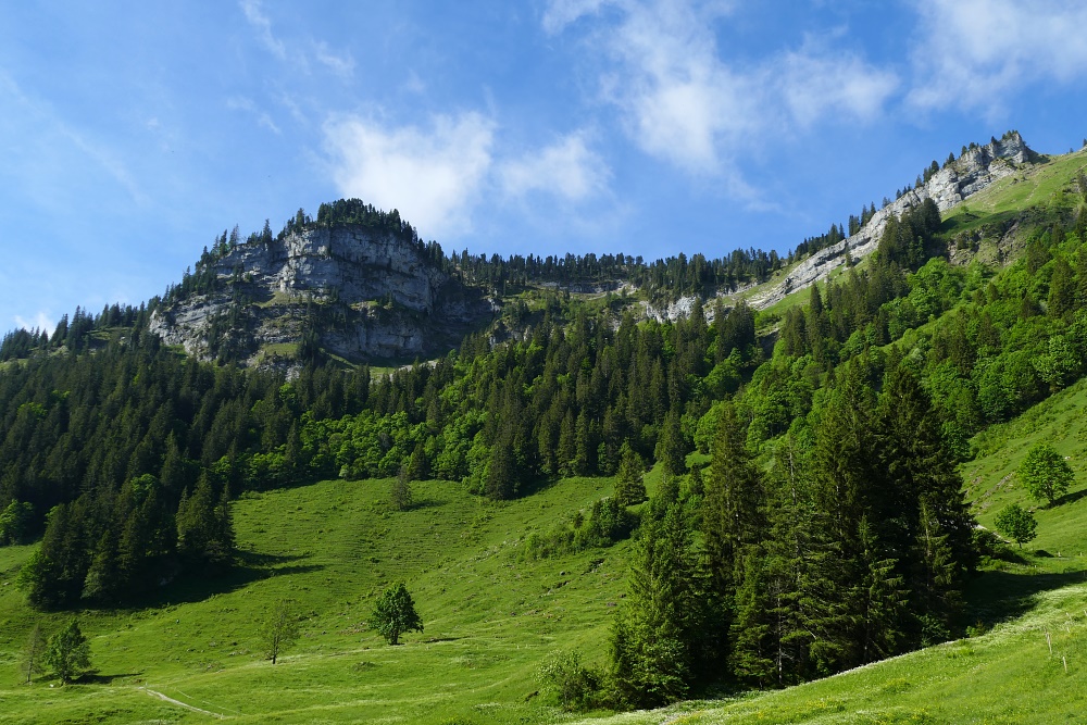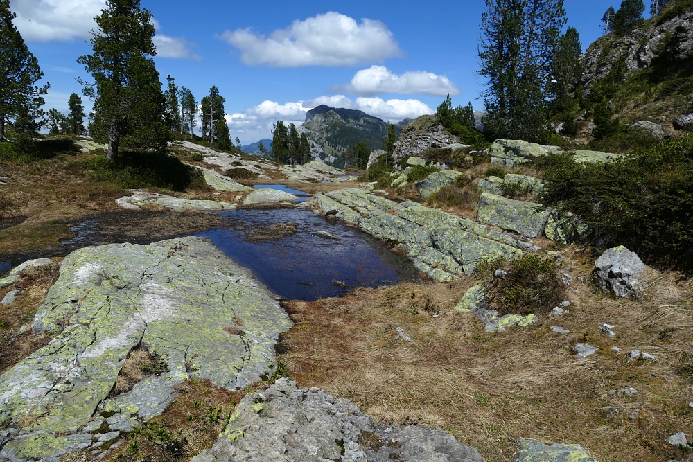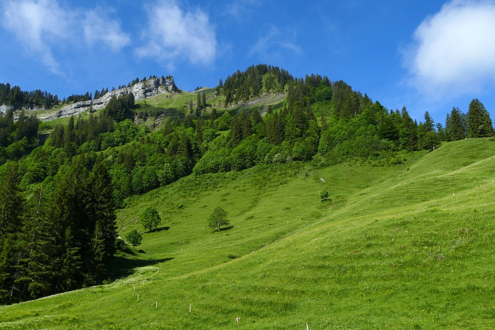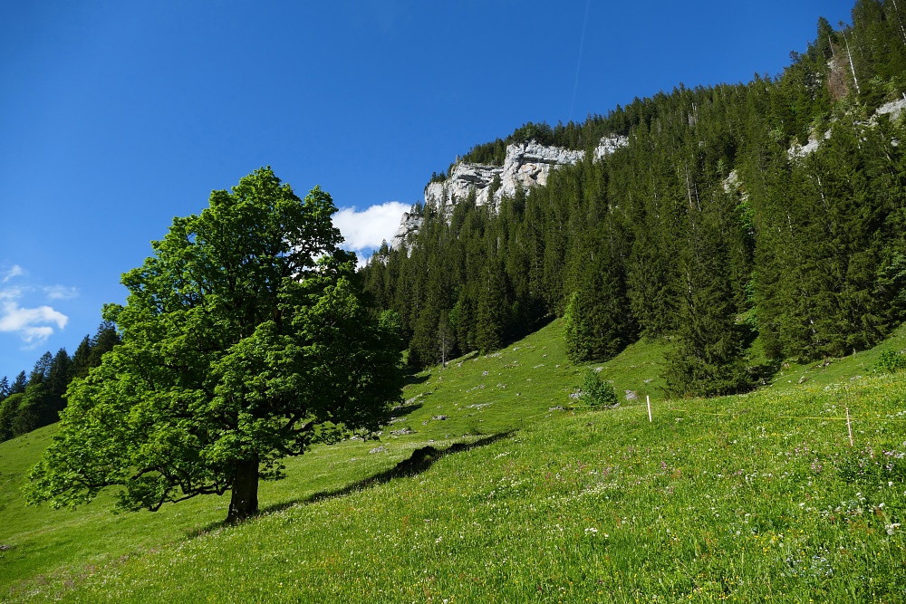 Auch hier ist die Schrattenkalk-Unterlage erkennbar, wenn auch meist von Vegetation verdeckt.