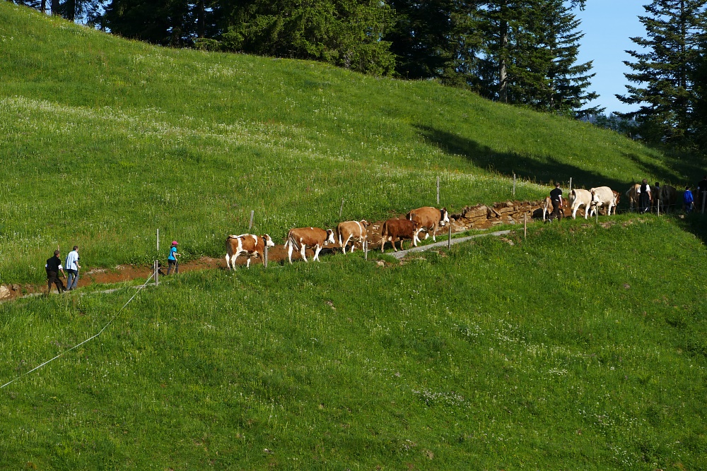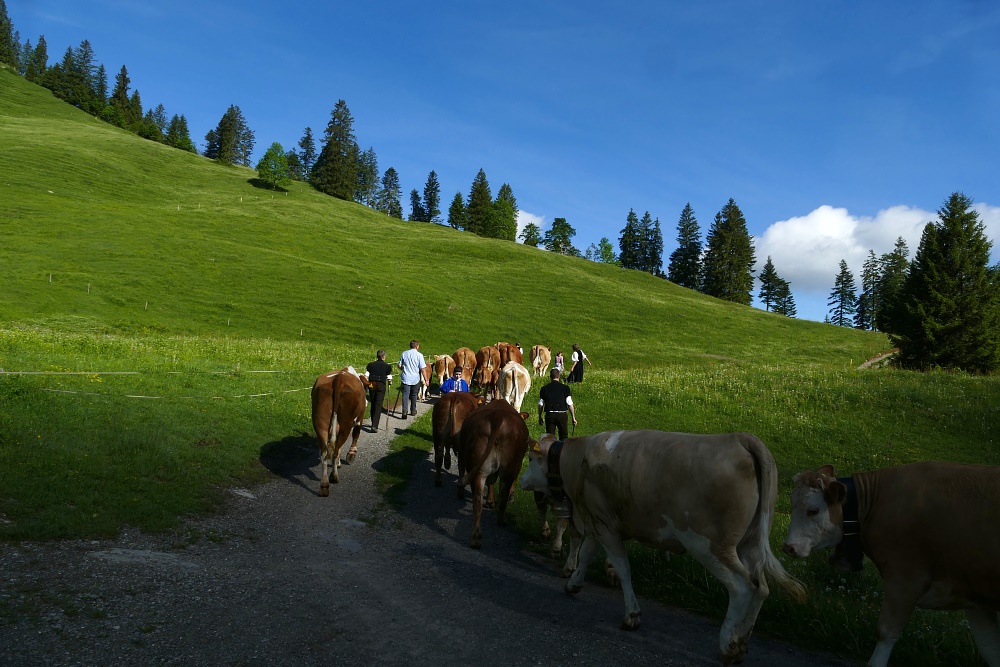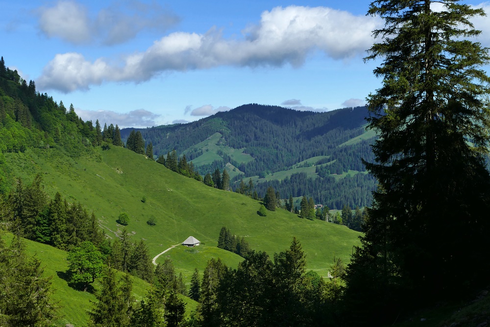Den Wald habe ich hinter mir gelassen und strebe nun über Truschhübel der Unterkunft zu.