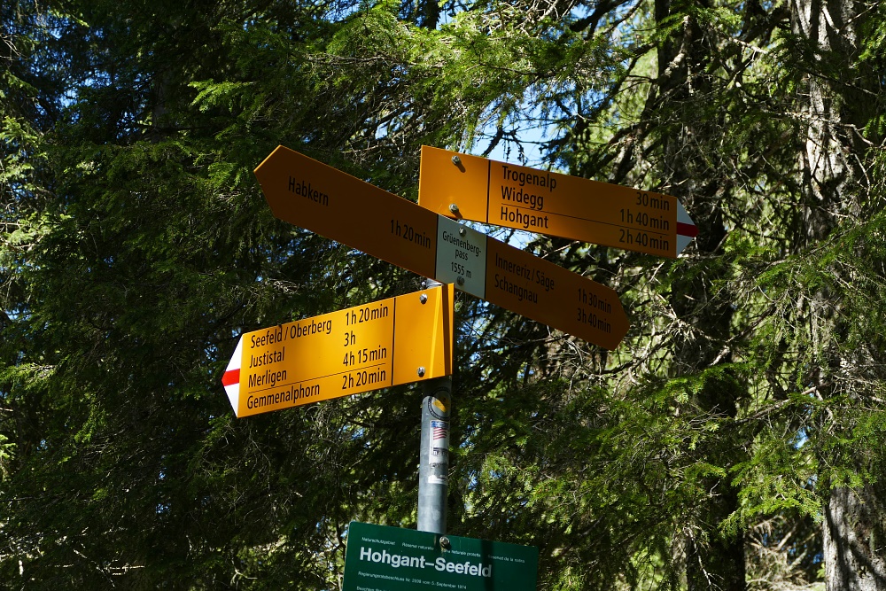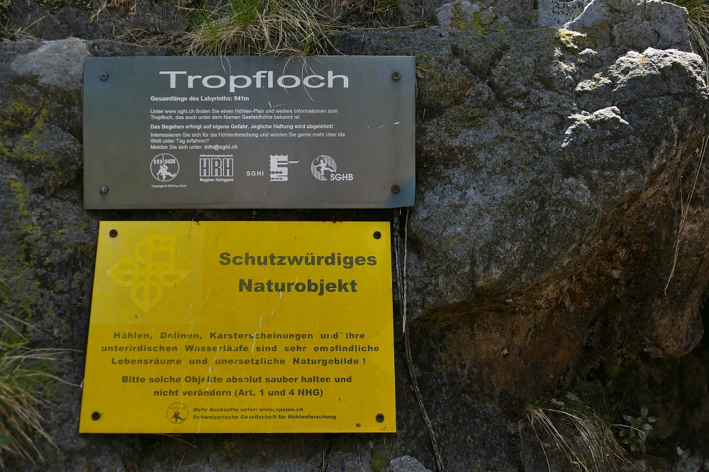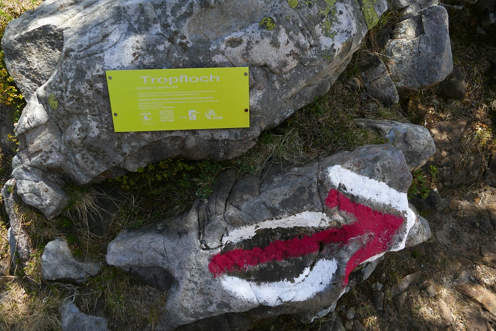 Beim Grünenbergpass zweigt der Weg zur Tropflochhöhle ab.